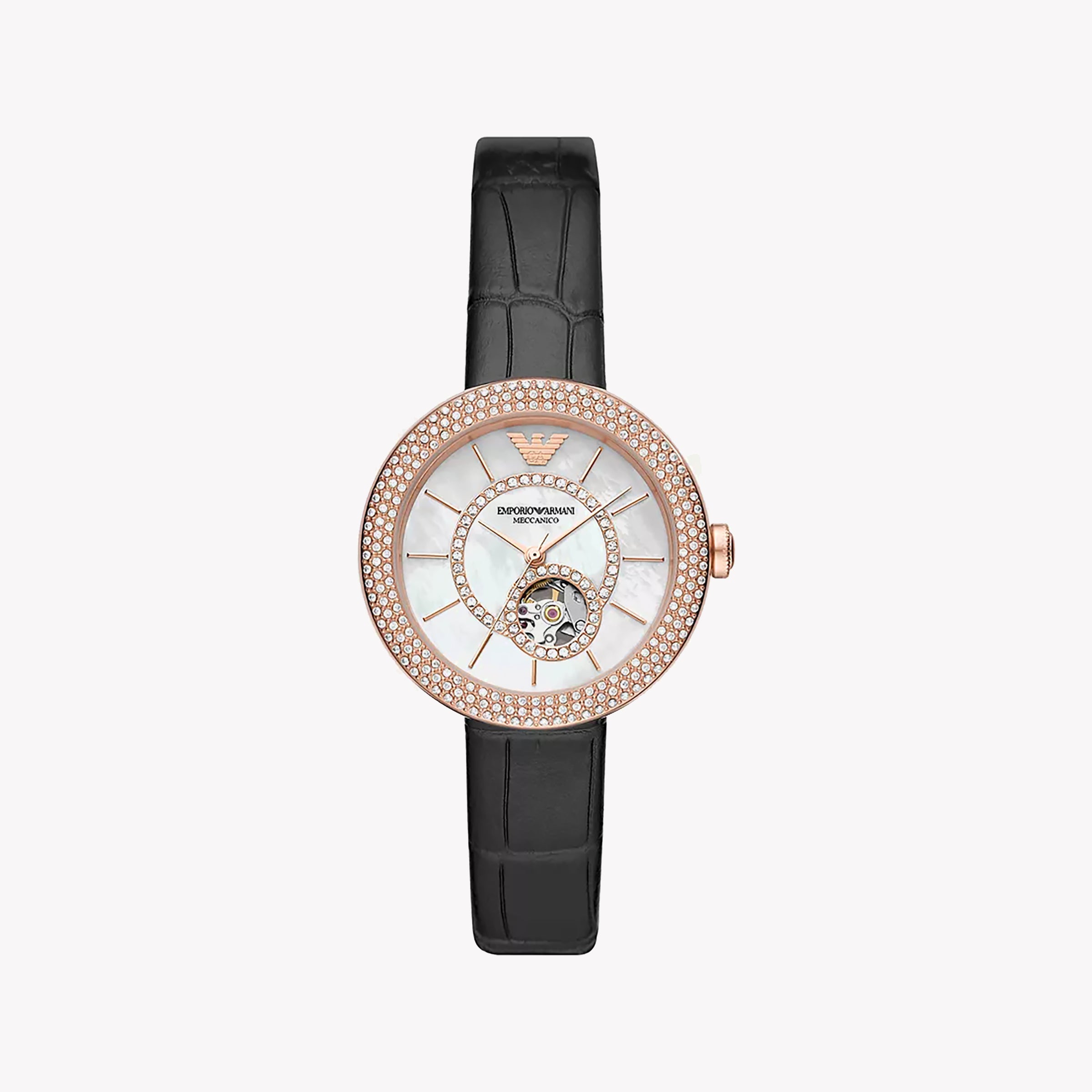 Emporio Armani Women's Rose Gold Watch, Black Leather | Ar60066