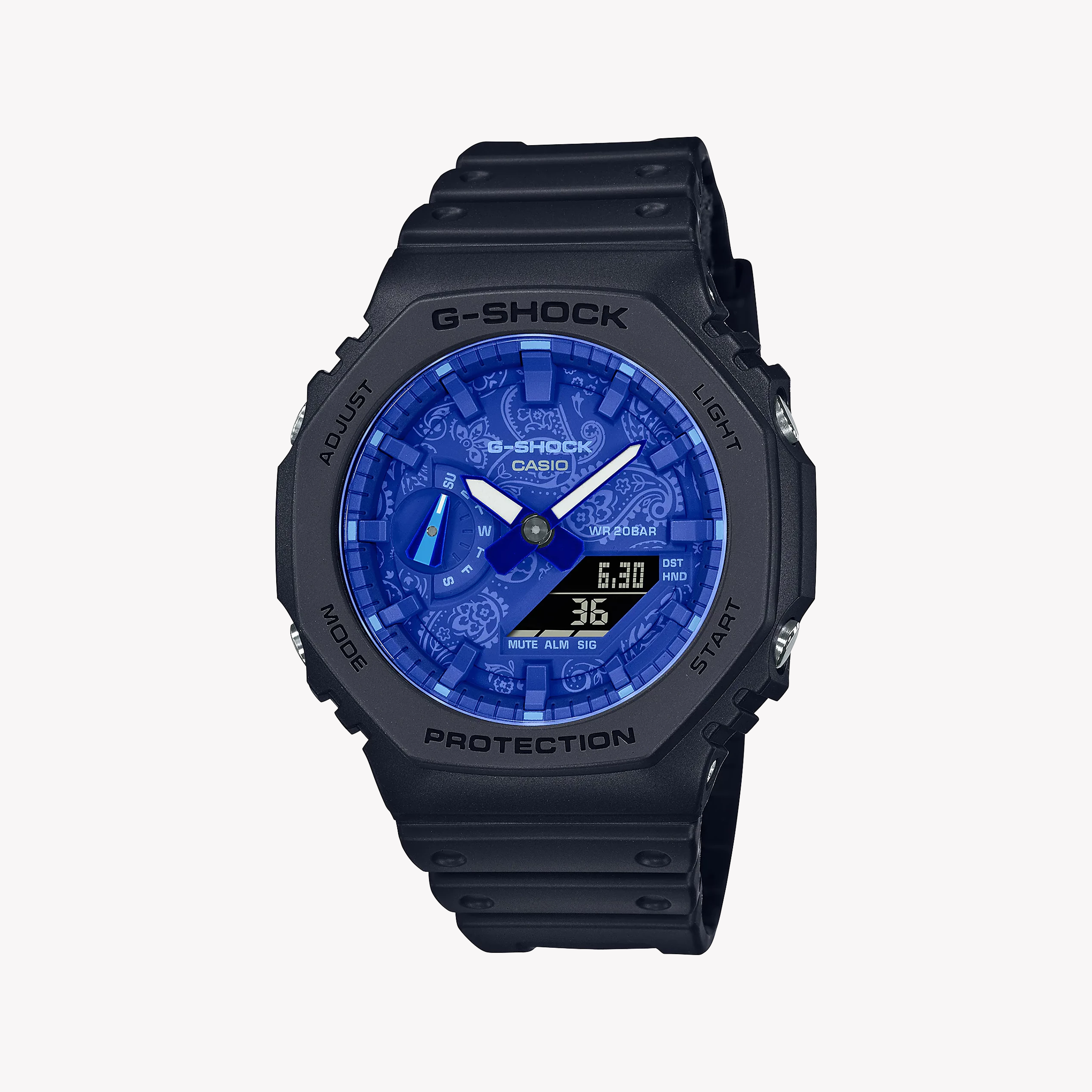 Experience sporty sophistication with the G-SHOCK GA-2100BP-1ADR. This durable, stylish watch features a black resin design, 200m water resistance, and reliable timekeeping.