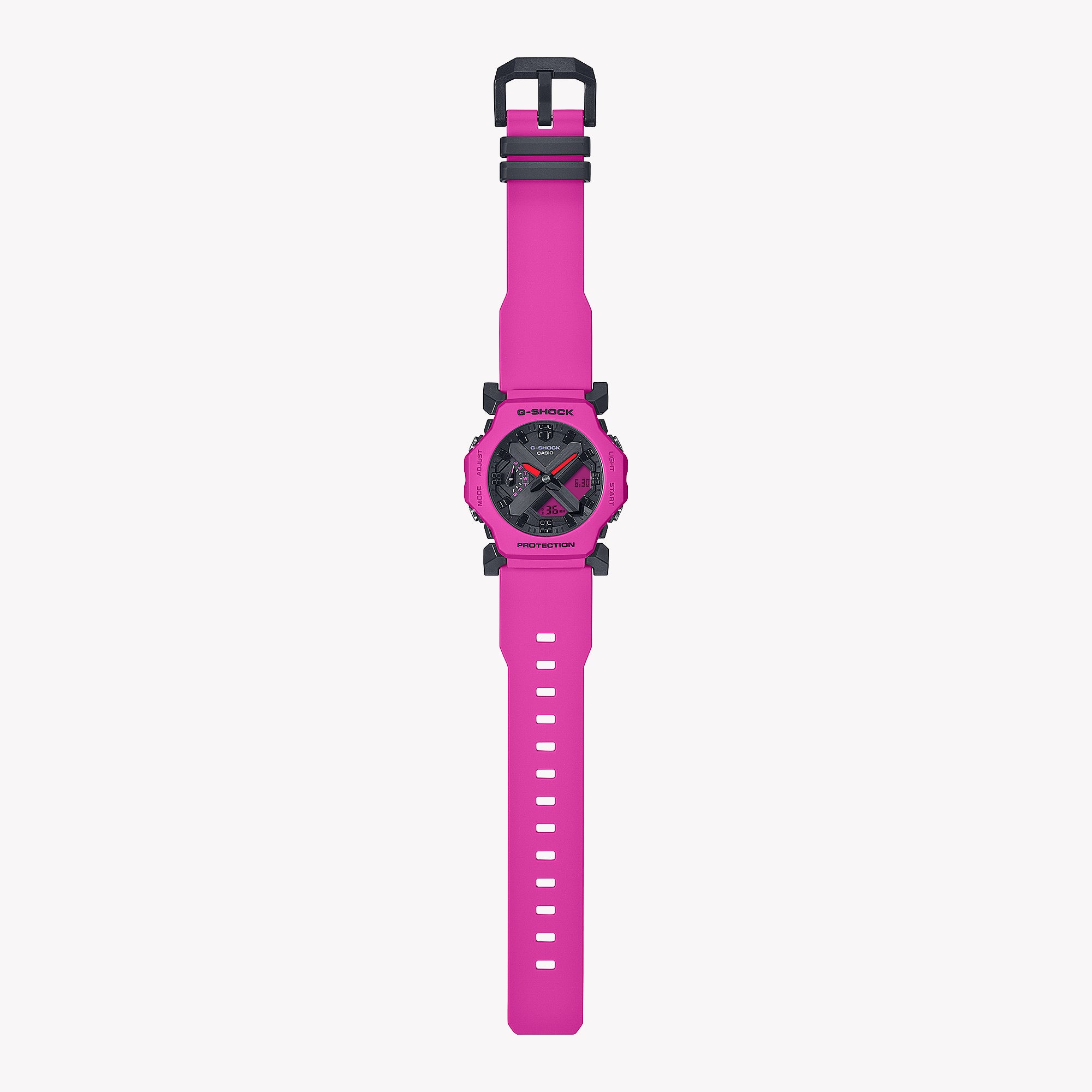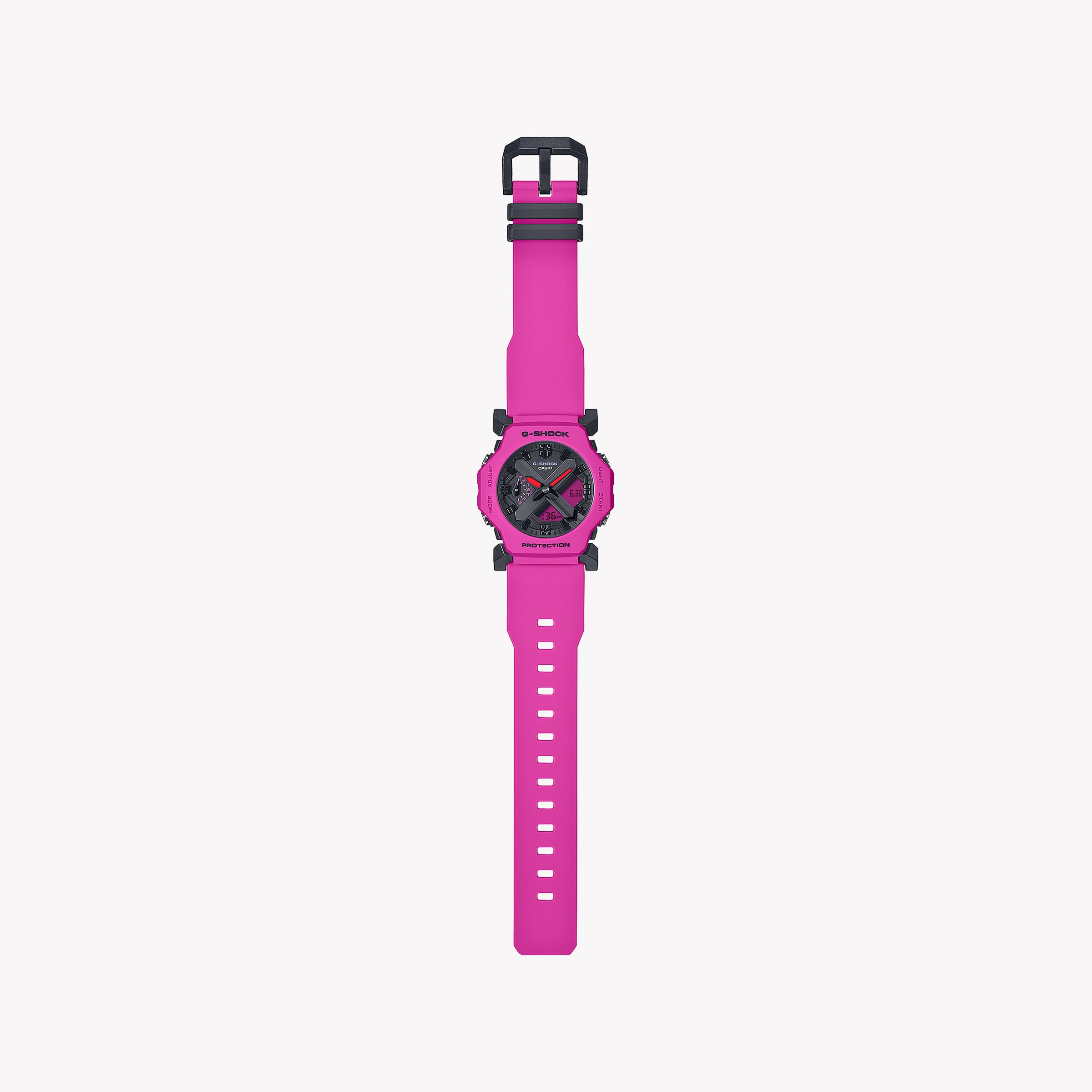 Step into style with the Casio GA-2300-4AER, a vibrant pink watch designed for dynamic women. Its bold resin case, sleek black dial, and durable water resistance make it the perfect blend of elegance and practicality for every occasion.
