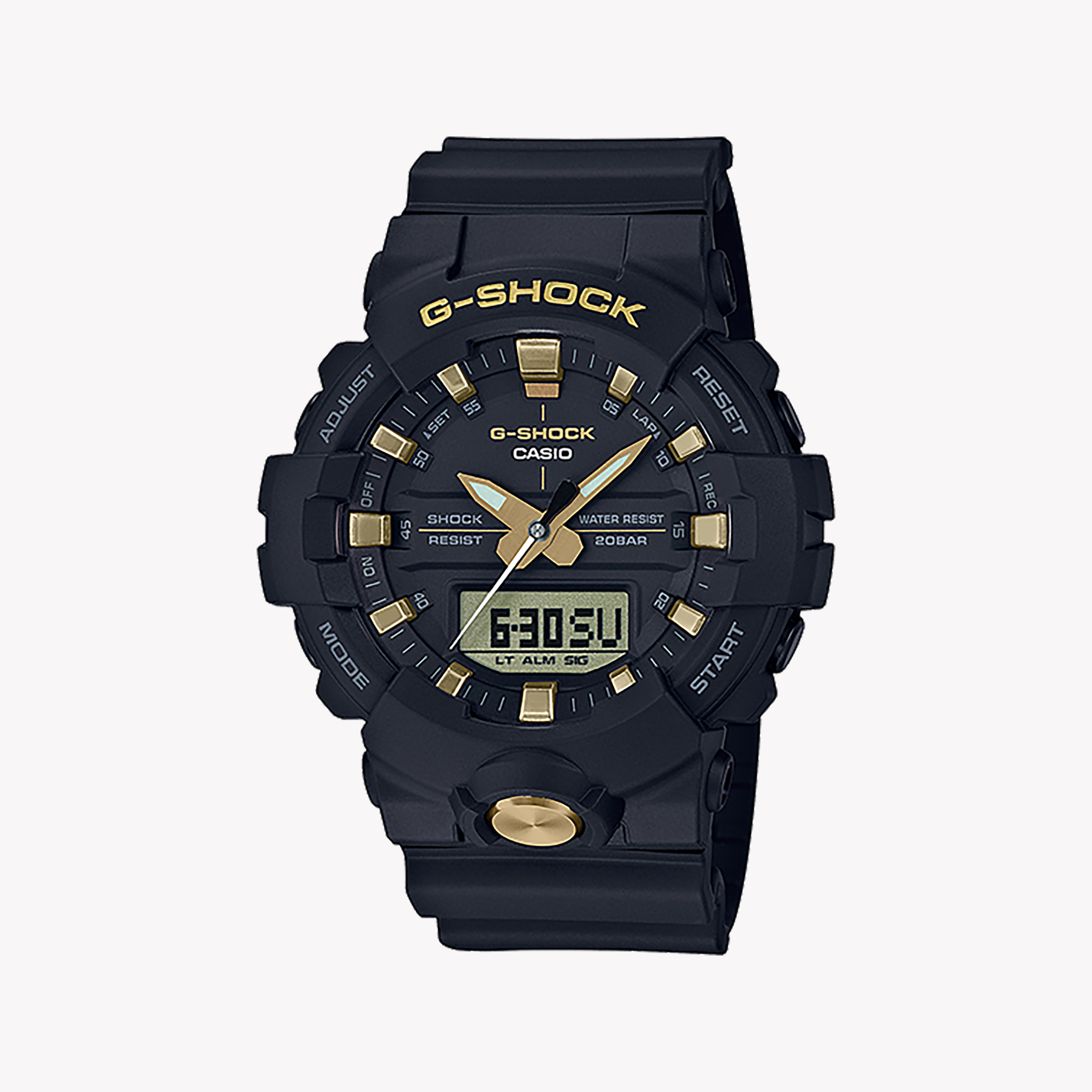 Experience sporty elegance with the GA-810B-1A9DR G-SHOCK. This stylish, all-black watch features 200m water resistance, precise timekeeping, and multifunctional features.