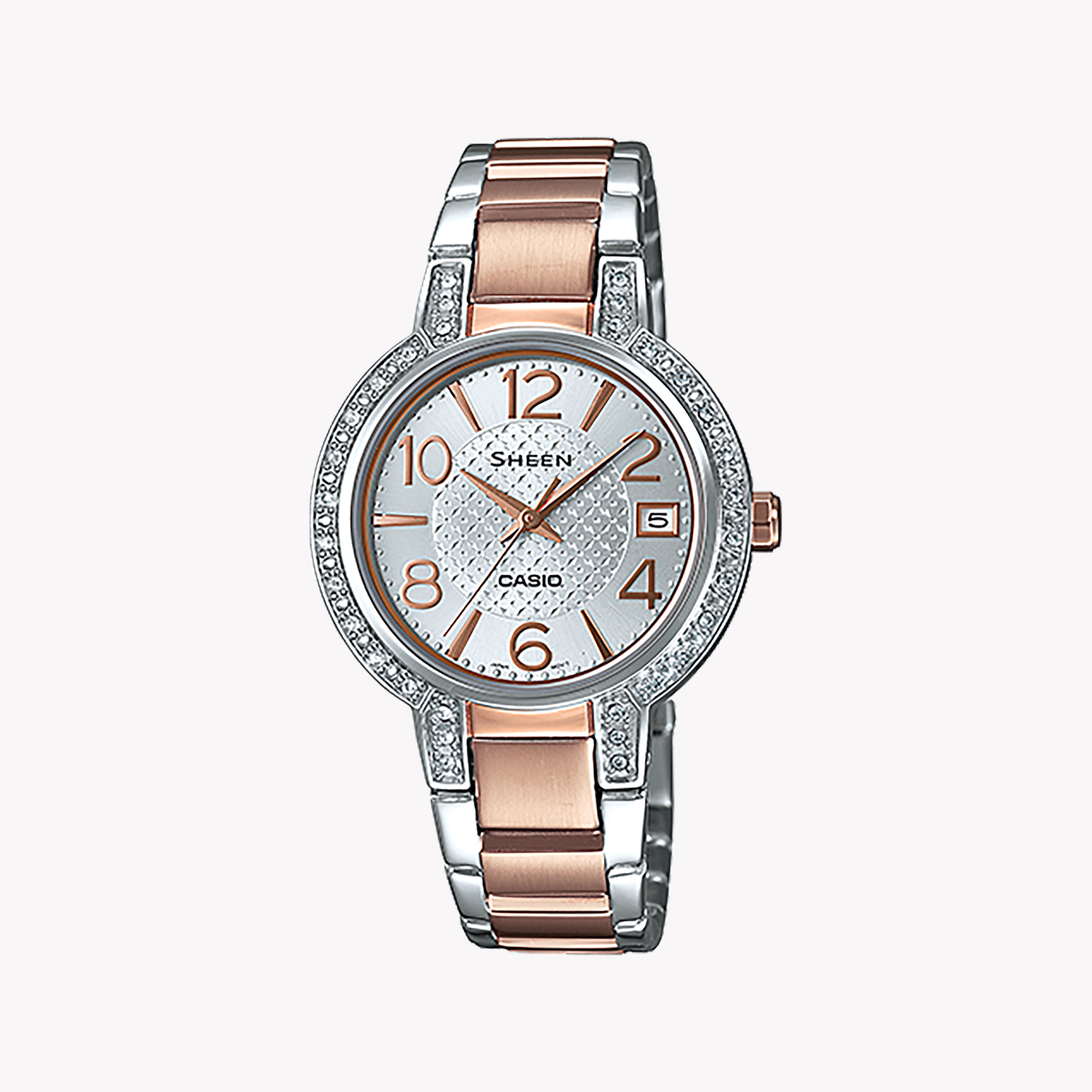 Casio She-4804sg-7audr Elegant Sporty Timepiece - Swarovski Accents & Rose Gold Band Women's Watch