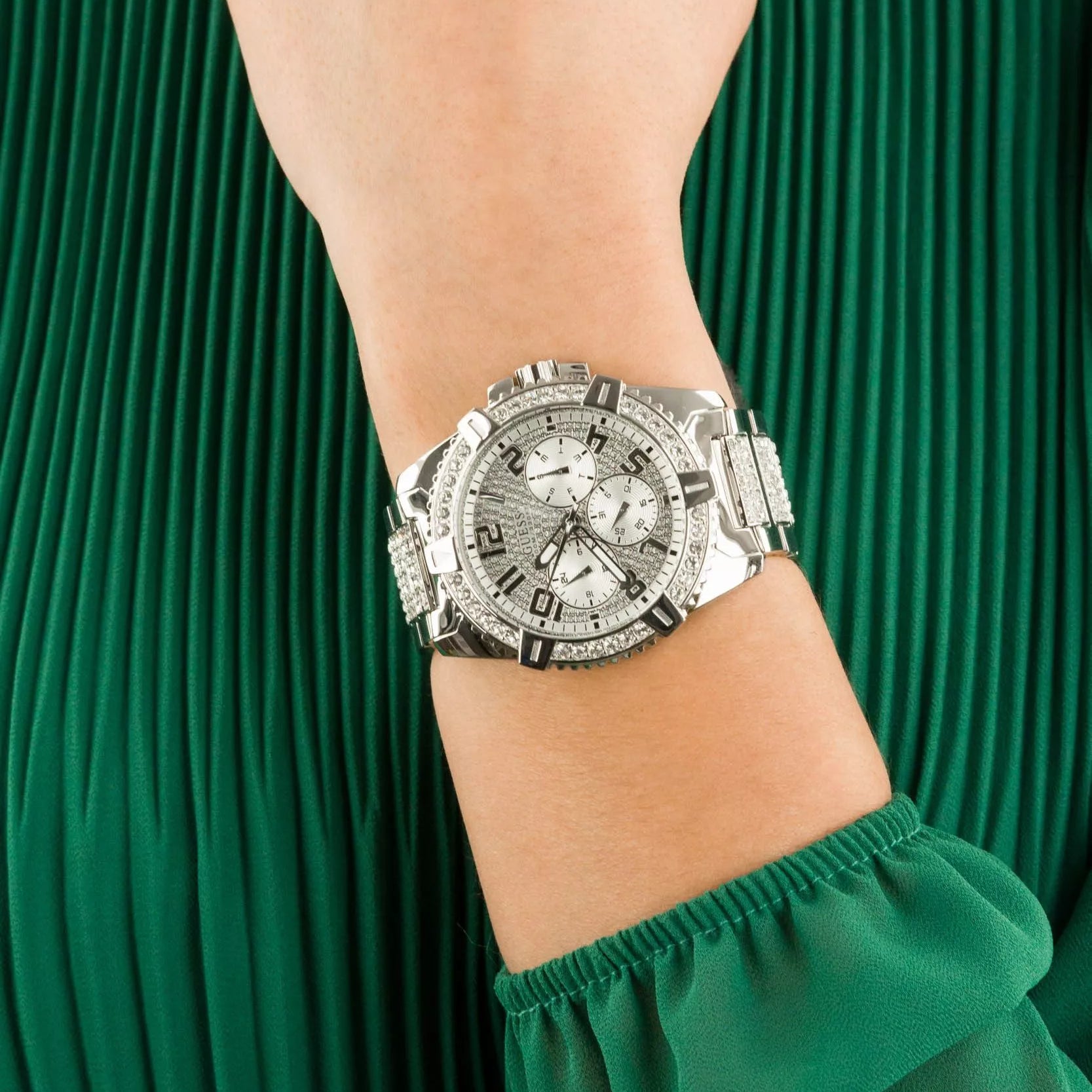 Experience timeless elegance with the GUESS W0799G1, a stunning 48 mm stainless steel watch. Its radiant silver finish and sophisticated design make it the perfect accessory for the modern woman. Stay stylish and punctual with this exquisite timepiece, featuring a durable band and reliable quartz movement—ideal for any occasion. Embrace sophistication with this must-have addition to your collection!
