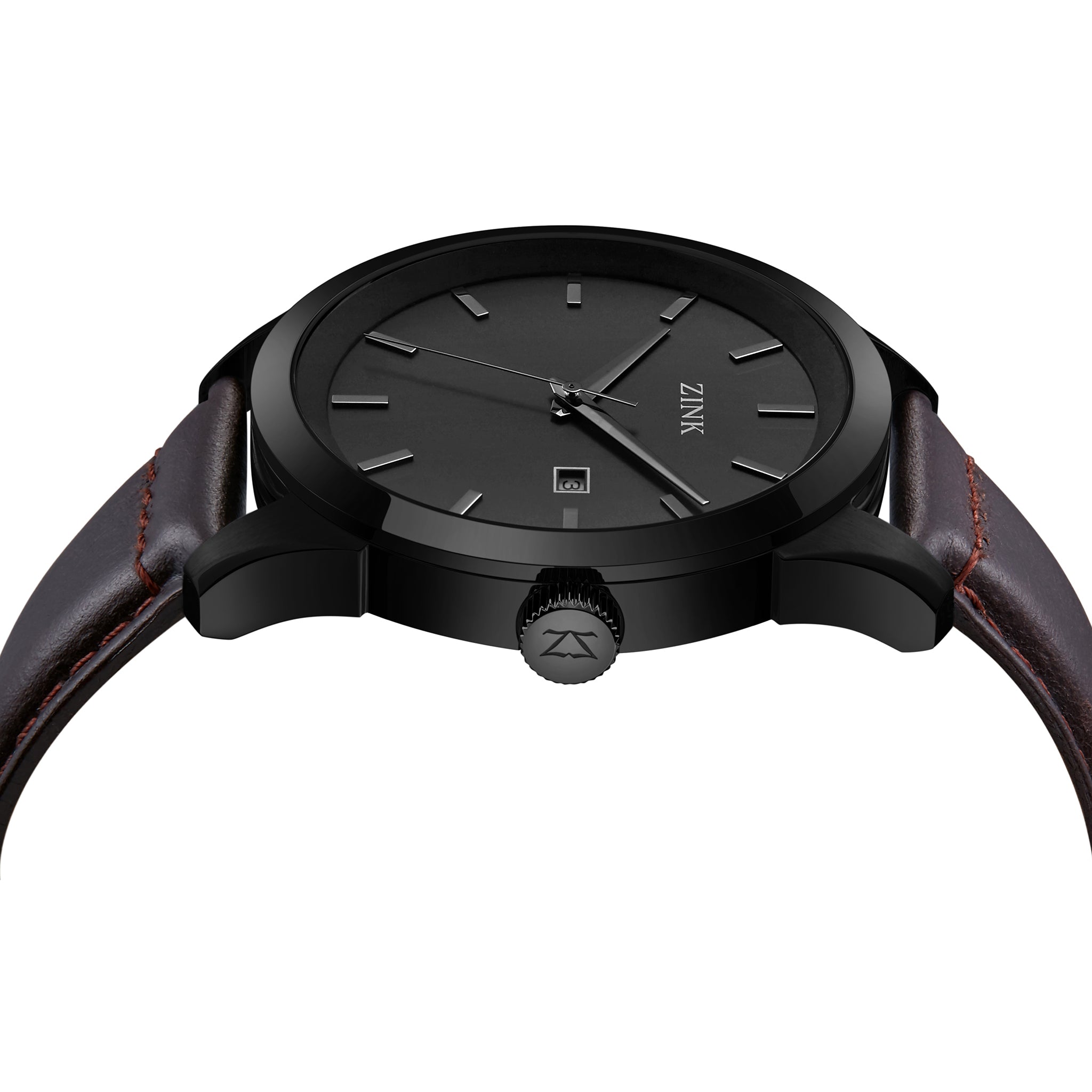 A watch is more than a timekeeper; it is a symbol of elegance encased in a showpiece with extreme craftsmanship. ZINK crafted the designs of Men's watches into contemporary timepieces dedicated to detail. This ZINK Watch is made for modern Men who are looking for a timepiece that can be used on every occasion. With its Brown premium Leather band and its Black dial, this watch is both fashionable and functional. Featuring a bold Round Stainless Steel case with a diameter of 46 mm, this elegant timepiece is the ideal choice for your everyday outfits as it has a straightforward design with an eye-catching style.