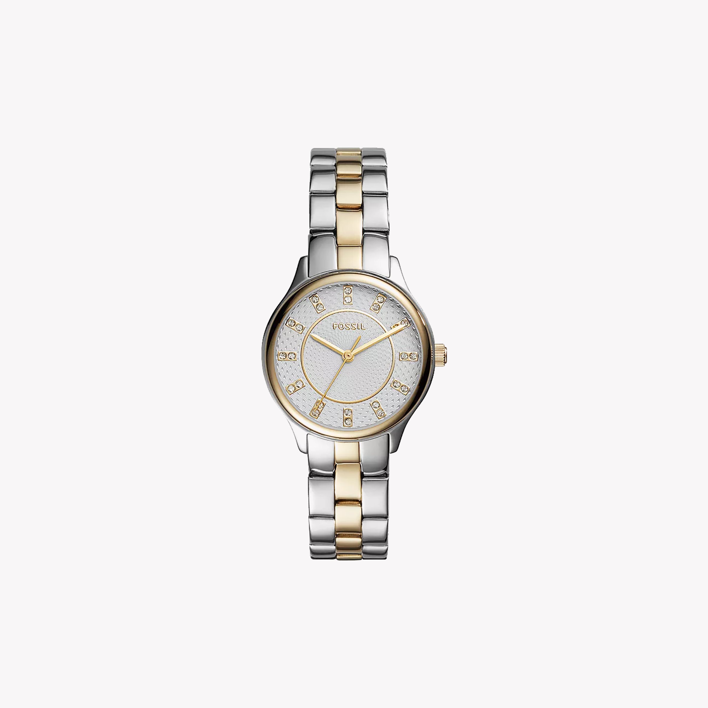 Fossil Women's Two Tone Silver & Gold Watch, Silver Dial | Bq1574