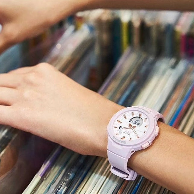 Express your style with the BSA-B100-4A2DR BABY-G watch, a perfect fusion of practical features and fashionable design that caters to both your workouts and casual outings.