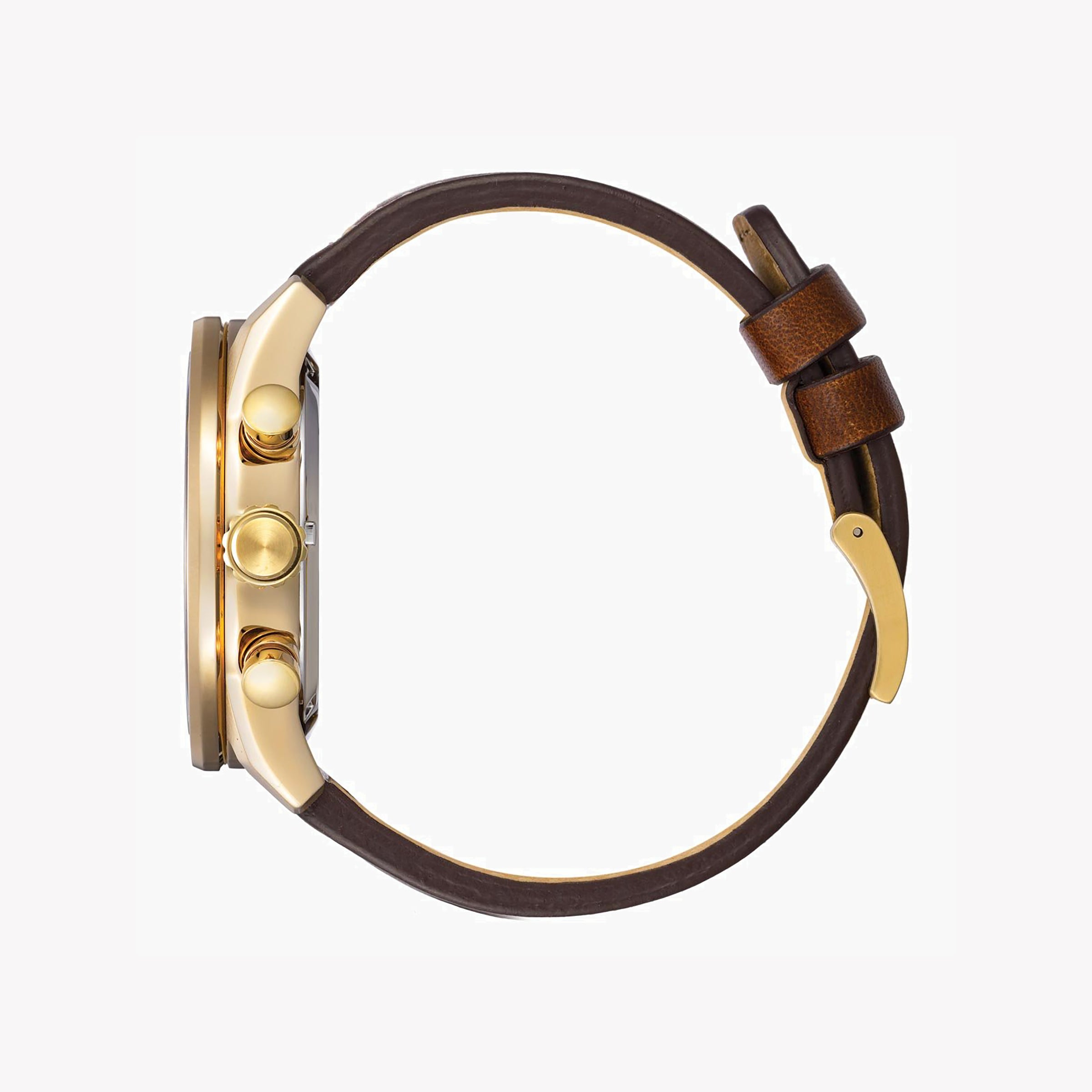 - Striking Design: The 45 mm stainless steel case in a radiant gold finish is complemented by a rich brown calf leather band, ensuring this timepiece stands out whether you're at the office or out on the town.