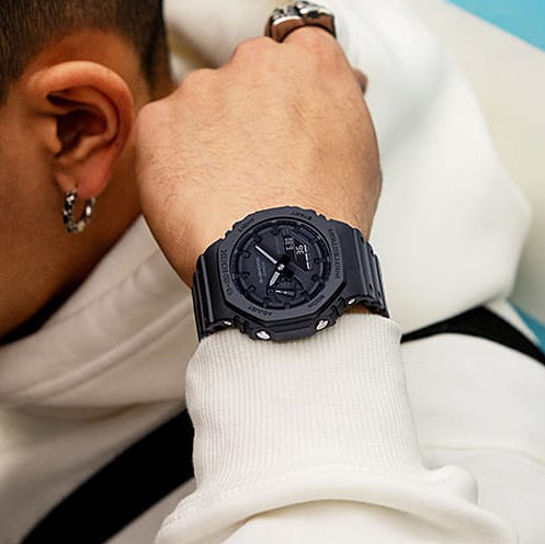 Embrace sophistication with the Casio GA-2100-1A1ER. This elegant timepiece features a striking black carbon and resin case, world time functionality, and advanced timing features, making it the perfect companion for stylish women on the go. Ready for both work and adventure, it’s more than just a watch—it’s your statement piece.