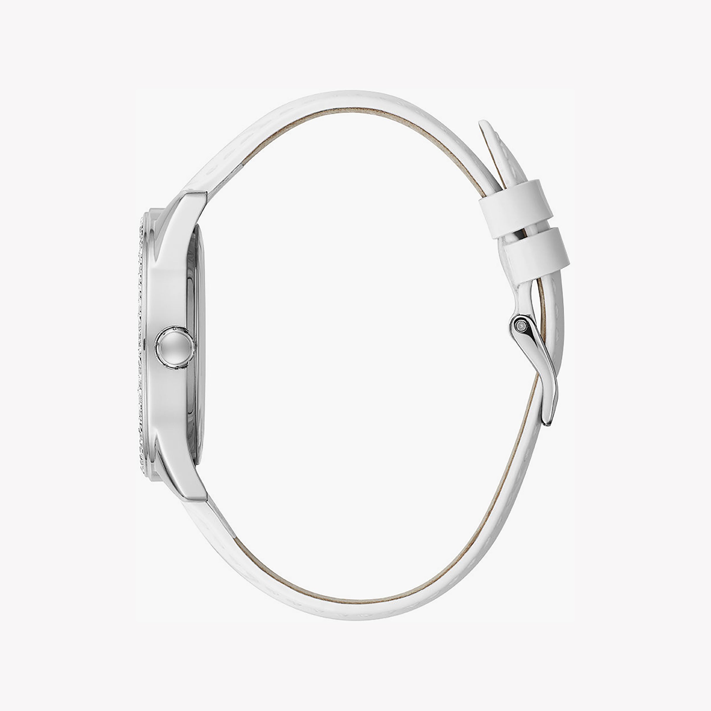 Guess Women's Silver Watch, White Leather Band | Gw0098l1