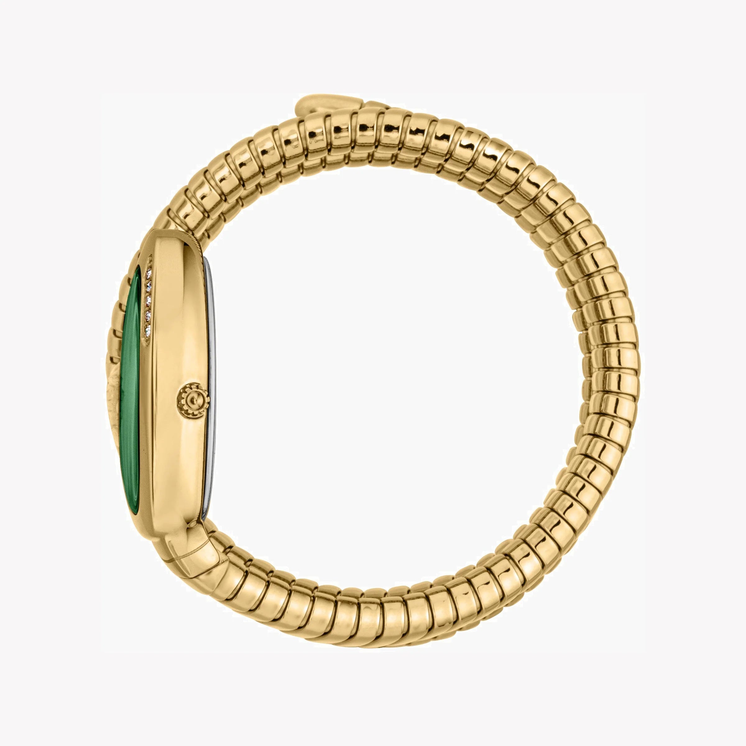 Timeless, sophisticated, elegant. This Just Cavalli Women's Watch has it all. From the Gold Stainless Steel Band to the Stainless Steel Asymmetrical Gold Case of 22 x 33.5 mm diameter and of course the elegant Green Dial, this watch is the perfect representation of the ultimate sophistication.
