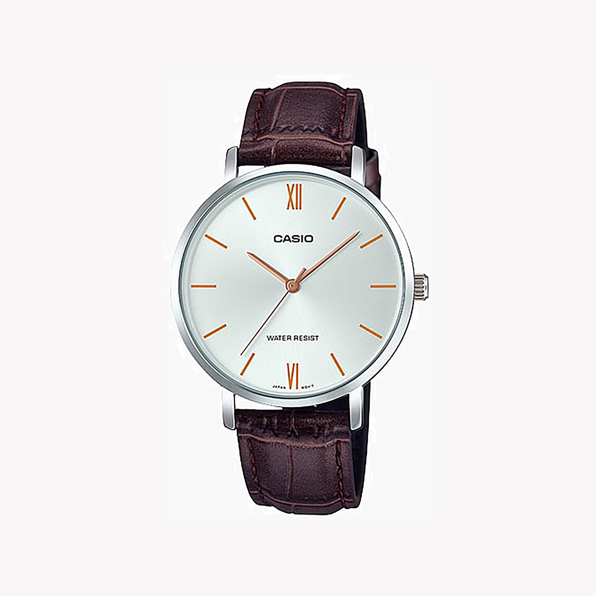 Casio Men's Silver Watch, Brown Leather Band | Ltp-Vt01l-7b2