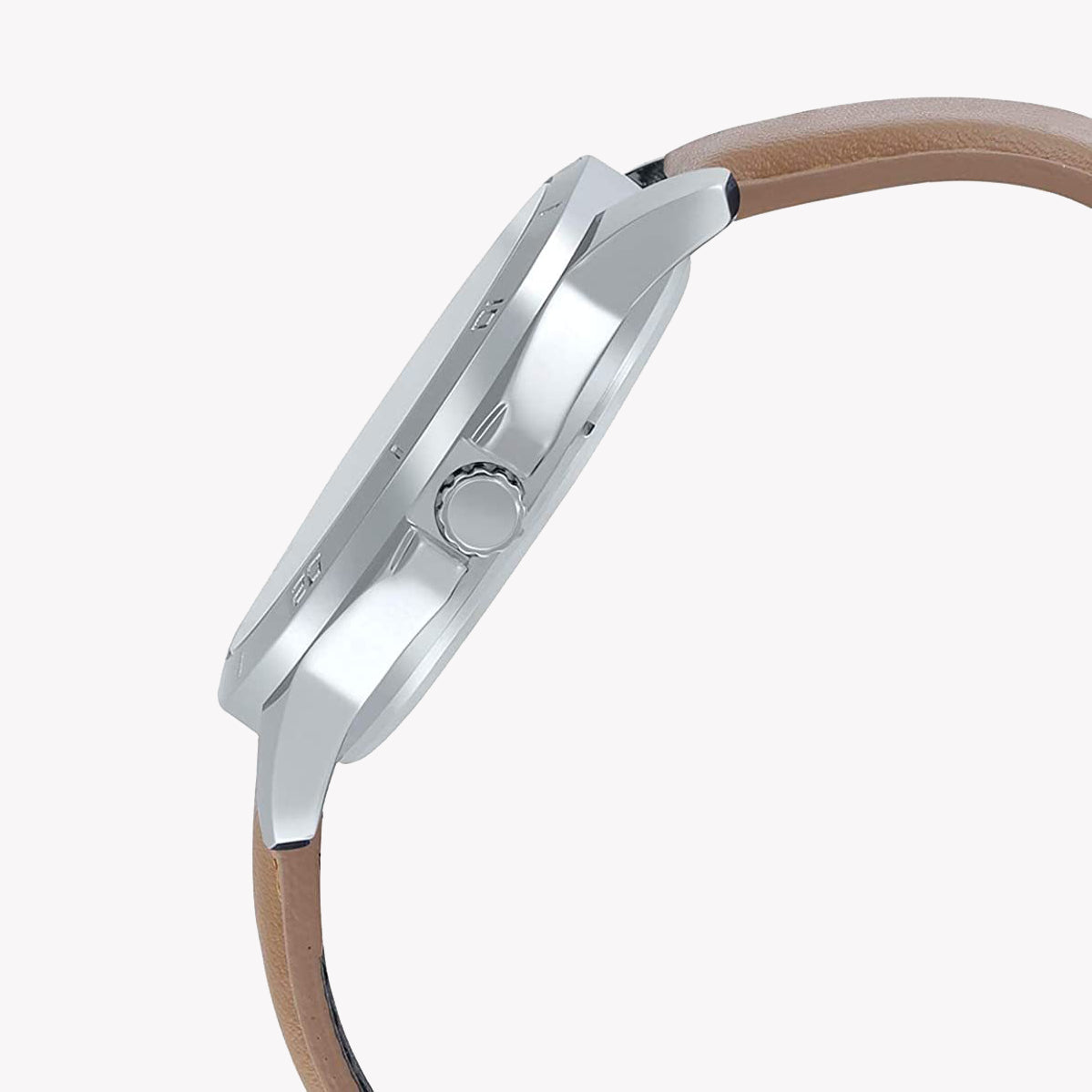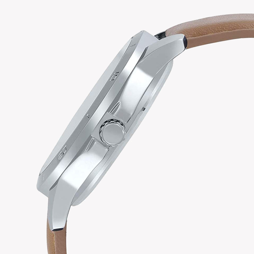- Classic Design: With a timeless 41 mm case, this watch exudes a versatile charm that attracts discerning individuals. The polished stainless steel construction adds a hint of sophistication, while the luxurious leather strap guarantees comfort for any occasion.