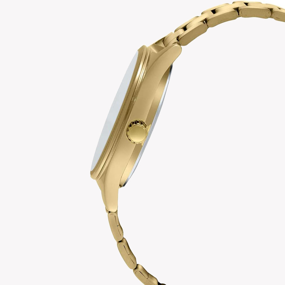 - Striking Strap: The stainless steel strap, finished in an elegant IP gold, adds sophistication and durability while providing a comfortable fit for all-day wear.