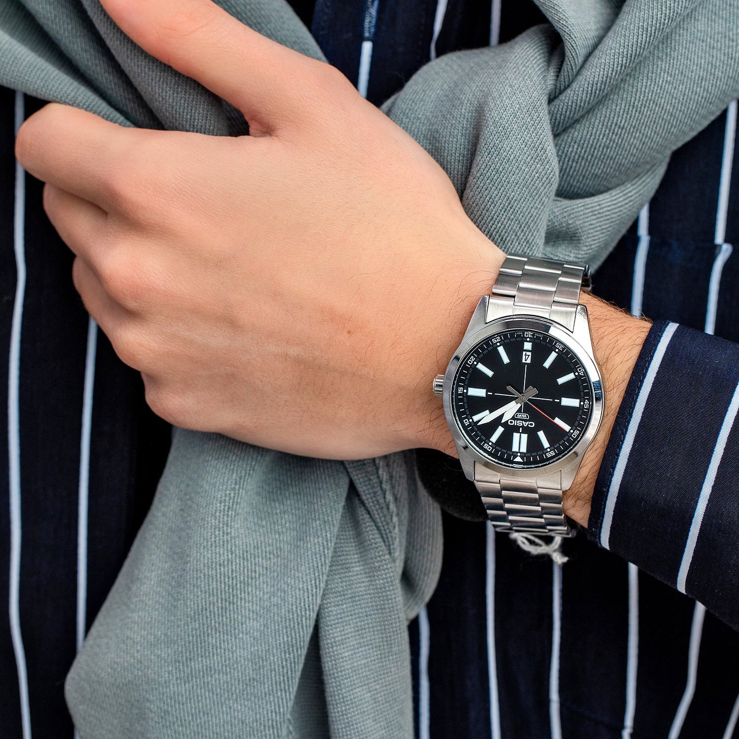 Style yourself for work or play with the Casio MTP-VD02D-1E. This watch not only keeps you punctual but also enhances your confidence, making it an essential addition to your collection.