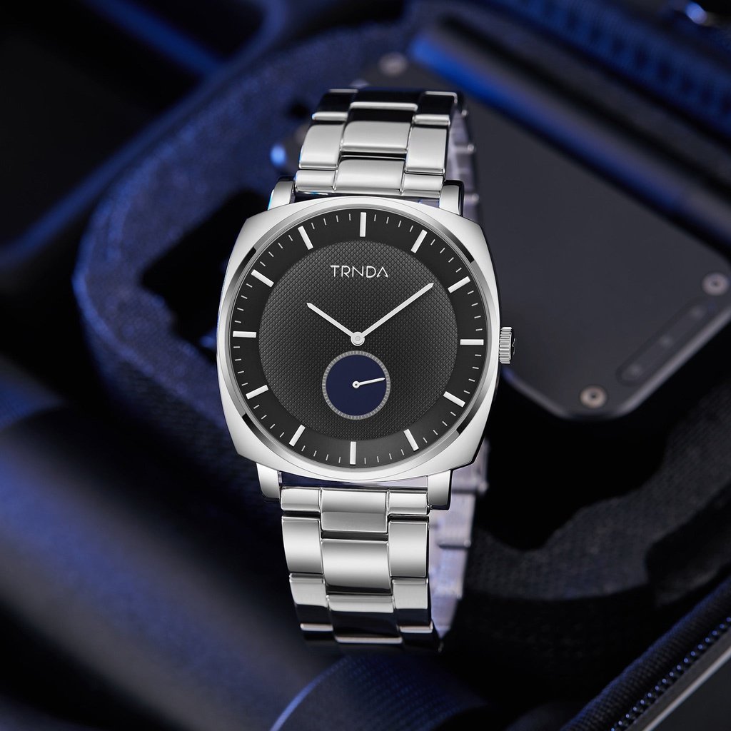 Make a bold impression with the TRNDA Trendy Stainless Steel Men's Watch. This elegant timepiece features a stunning square silver case and a unique gradient dark grey dial. Crafted from durable 316L stainless steel, it promises style and reliability. With a comfortable silver solid stainless-steel band and 3 ATM water resistance, this watch is perfect for the modern man who values both fashion and function. Wear it every day and express your unique style effortlessly!