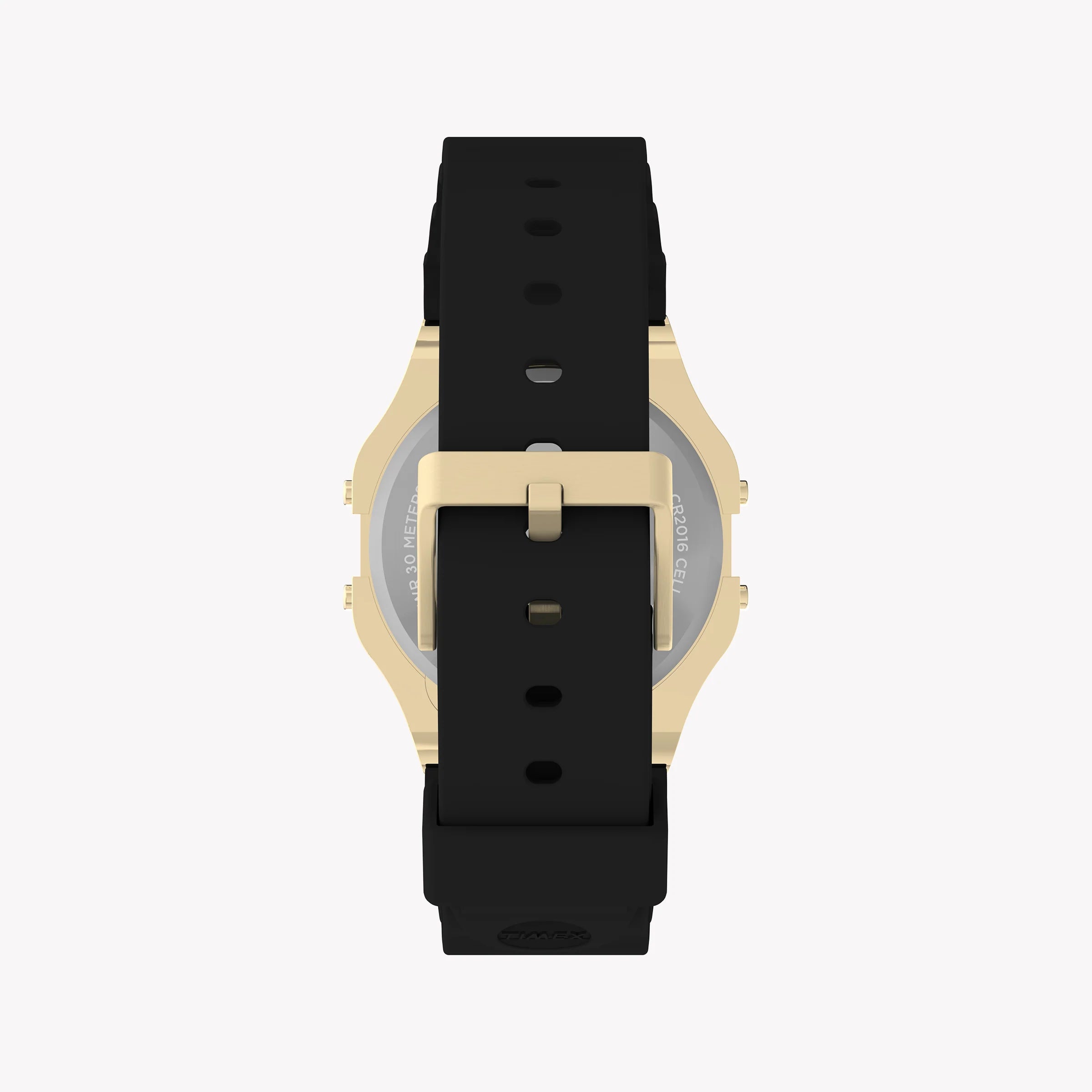 Step into a world of timeless elegance with the Timex T80 Gold Tone Black Lens and Resin Strap Watch. This chic unisex accessory features a striking gold case, sleek black lens, and a comfortable black resin strap. With a trusty chronograph, customizable alarm, and vibrant INDIGLO backlight, it's the perfect blend of retro charm and modern functionality. Stylish and versatile, this watch is an essential addition for anyone wanting to make a statement.