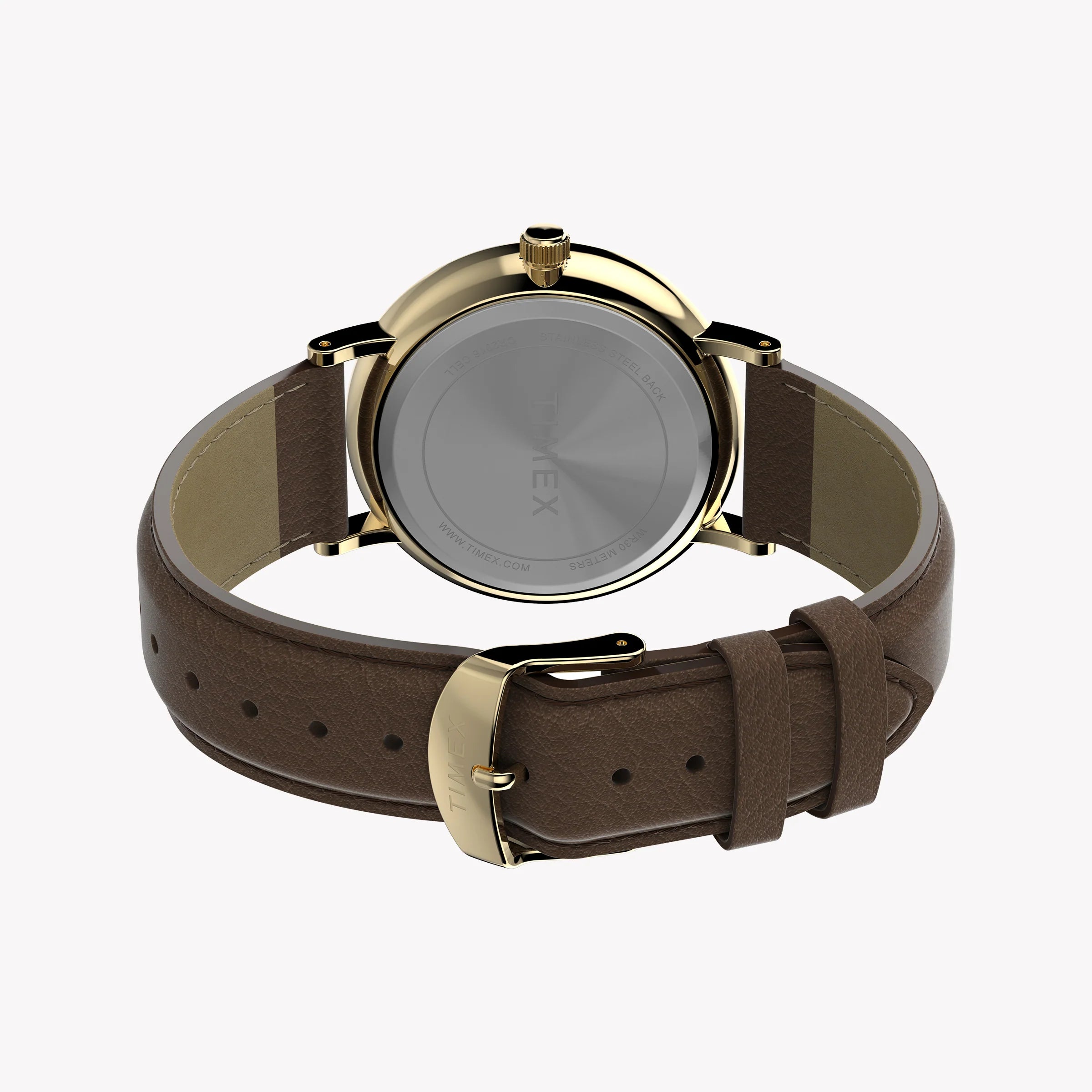 Timex Men's Gold-Tone Case, Brown Vegan Leather Strap | Tw2v91300