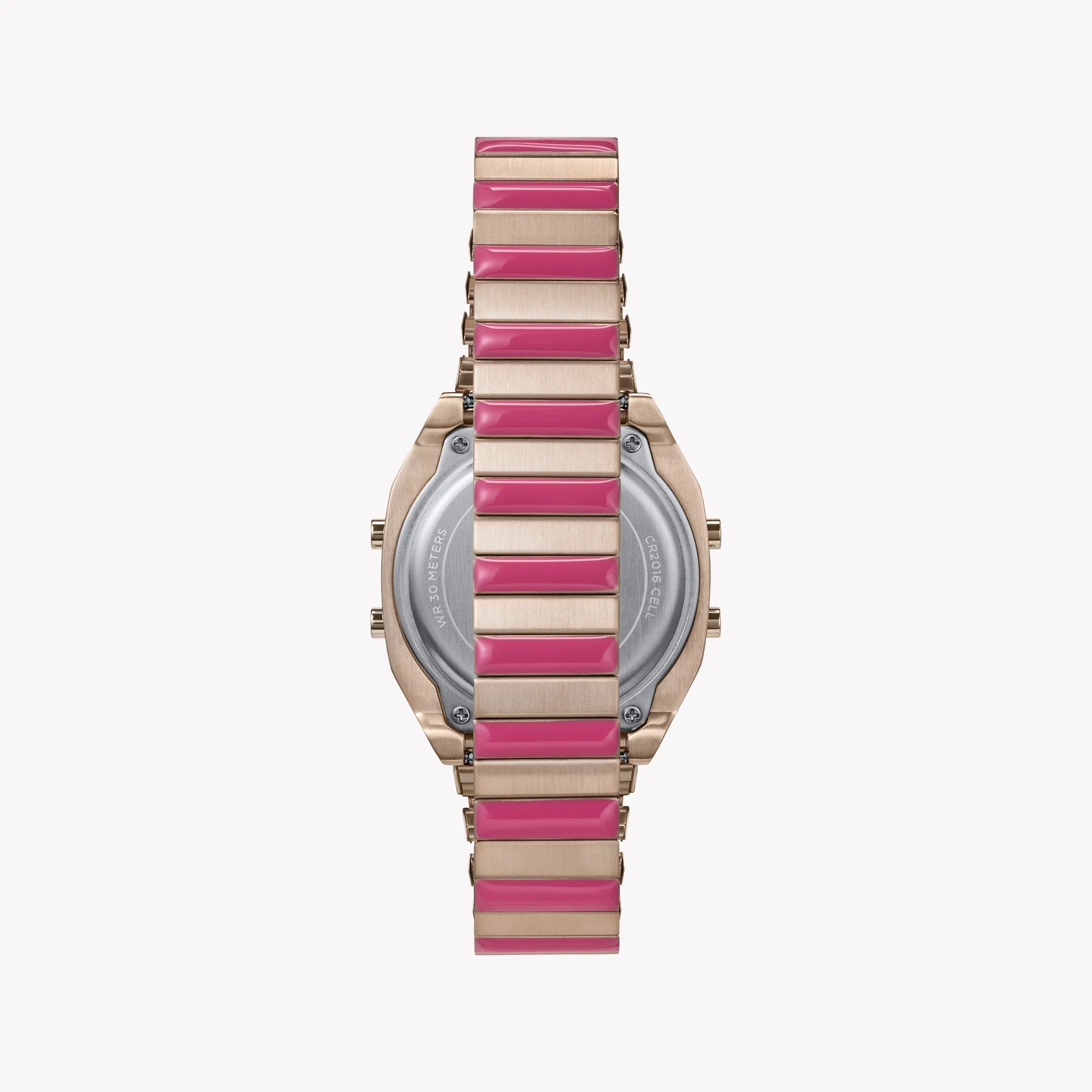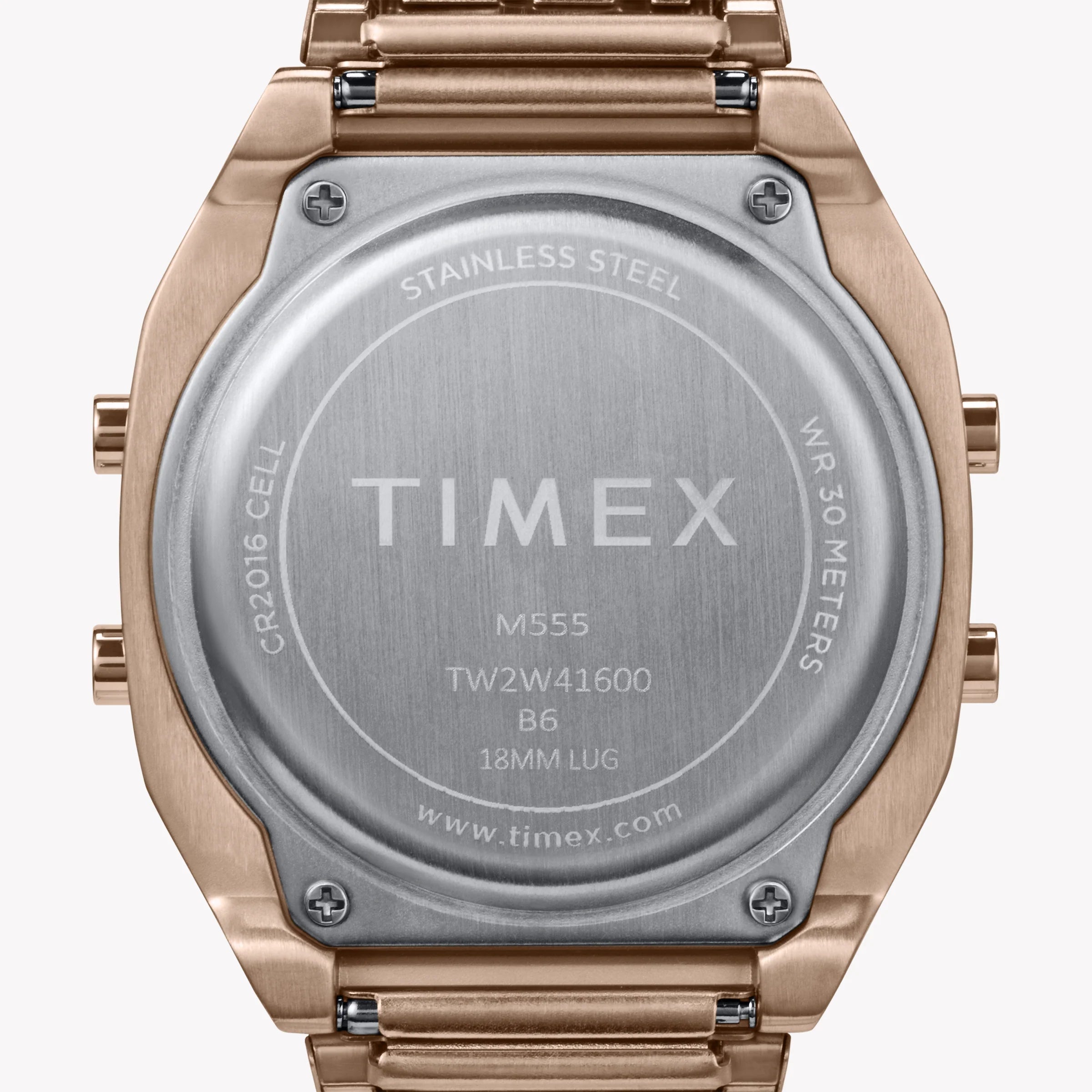 Step into style with the Timex T80 Rose Gold-Tone Watch, featuring a stunning stainless steel case and a chic pink-accented expansion band. This elegant timepiece blends vibrant fashion with reliable functionality—perfect for the modern woman on the go!
