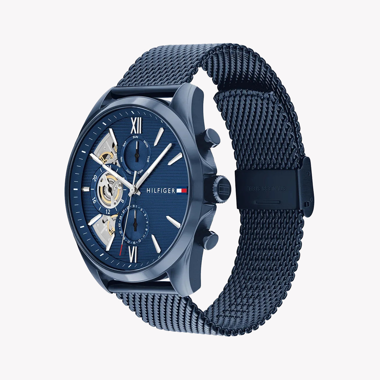 Experience timeless elegance with the TOMMY HILFIGER Men's Dark Blue Stainless Steel Watch. This sophisticated timepiece blends fashion with function, featuring a durable 44 mm case, quartz precision, and 5 ATM water resistance. Perfect for the modern man seeking a stylish statement.