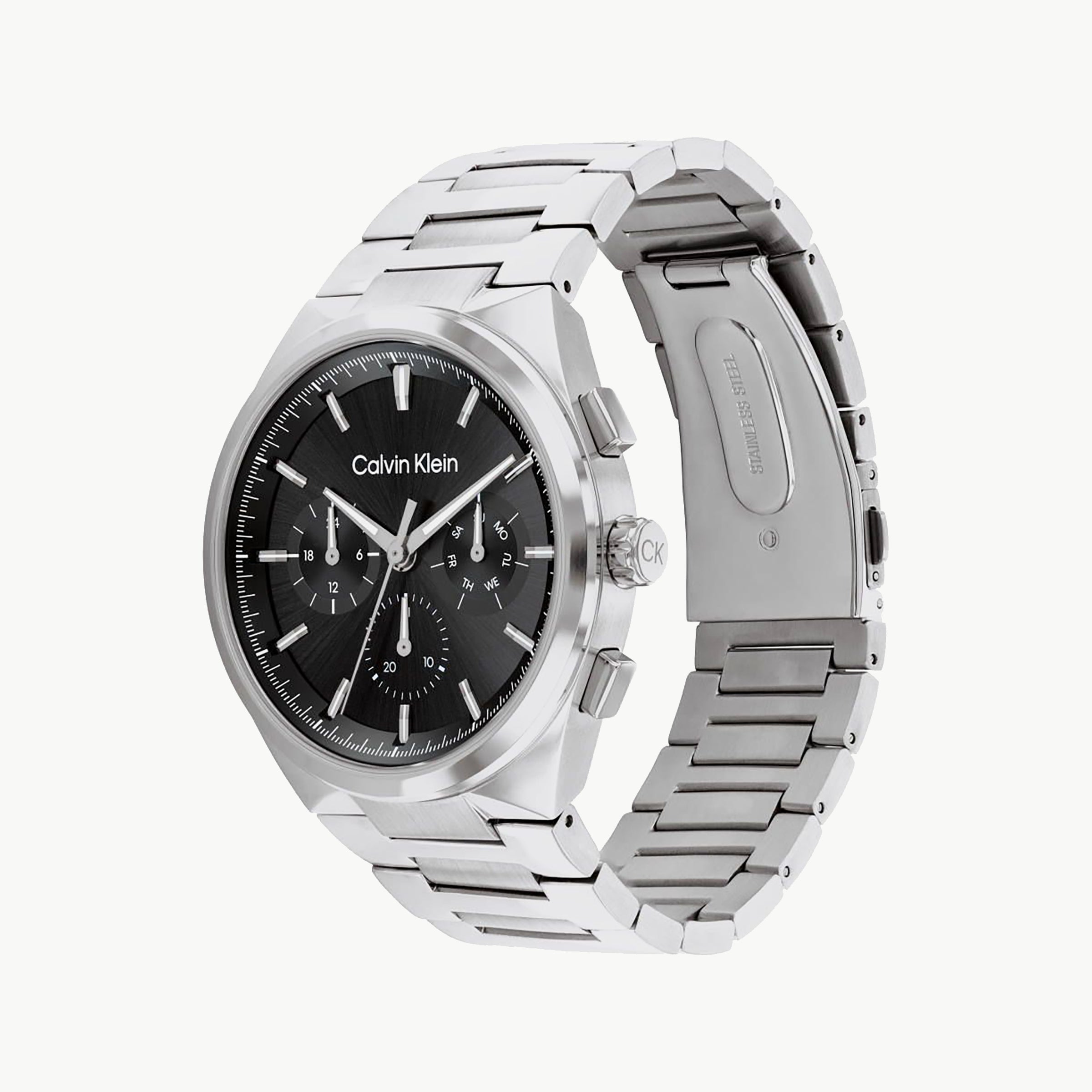 Ck Calvin Klein Men's Silver Stainless Steel Watch, Black Dial | Ck1u123m0056