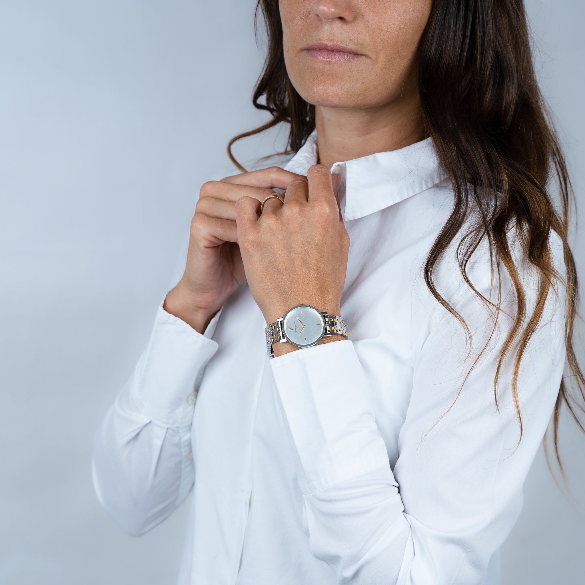Pierre Cardin Women's Two Tone Silver & Gold Watch, White Dial | Ccm.0531
