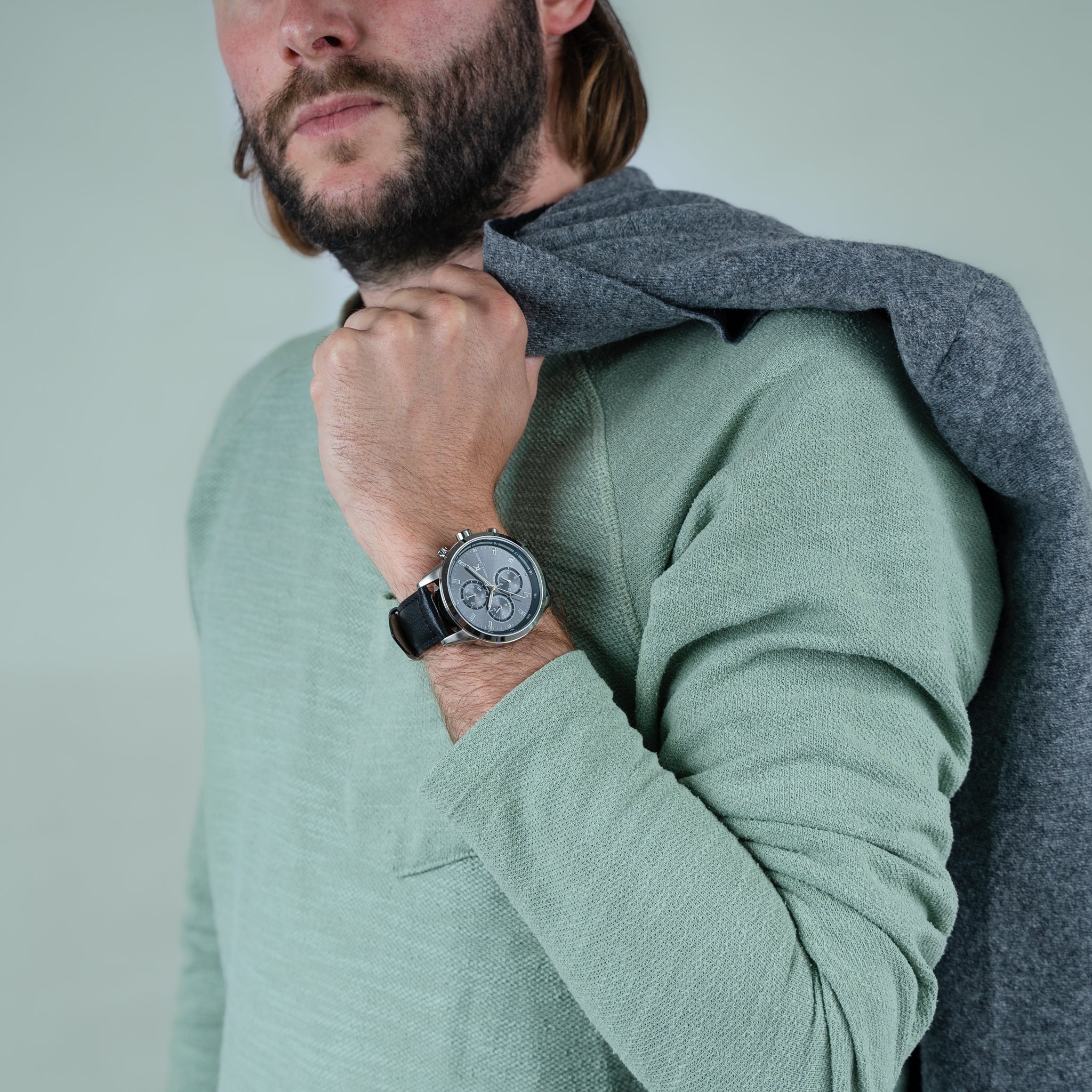 A stylish and luxurious-looking watch, the Pierre Cardin watch with a Metal Round Silver case features a Black Leather Band and a Black dial. It has a case diameter of 44 mm it will be a great addition to your outfit