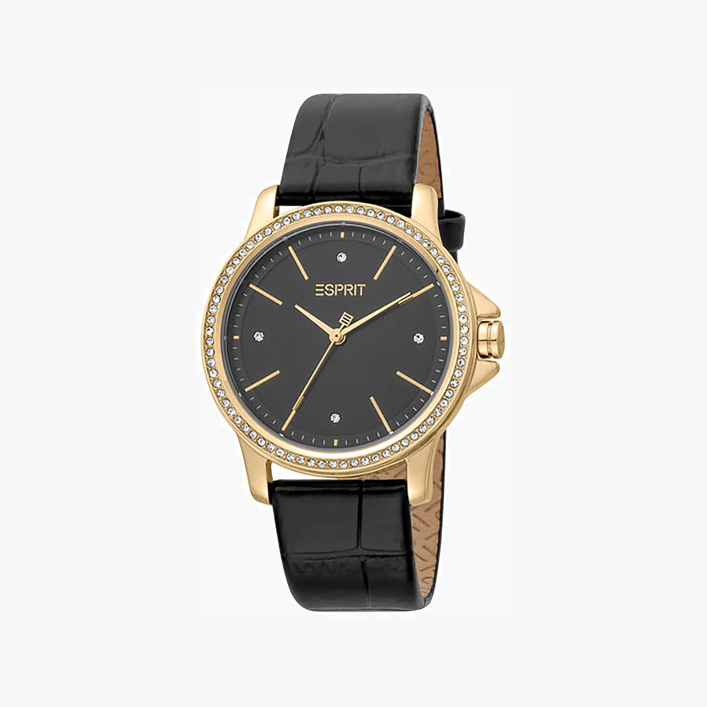 Esprit Women's Black Leather Watch, Black Dial | Es1l185m0065