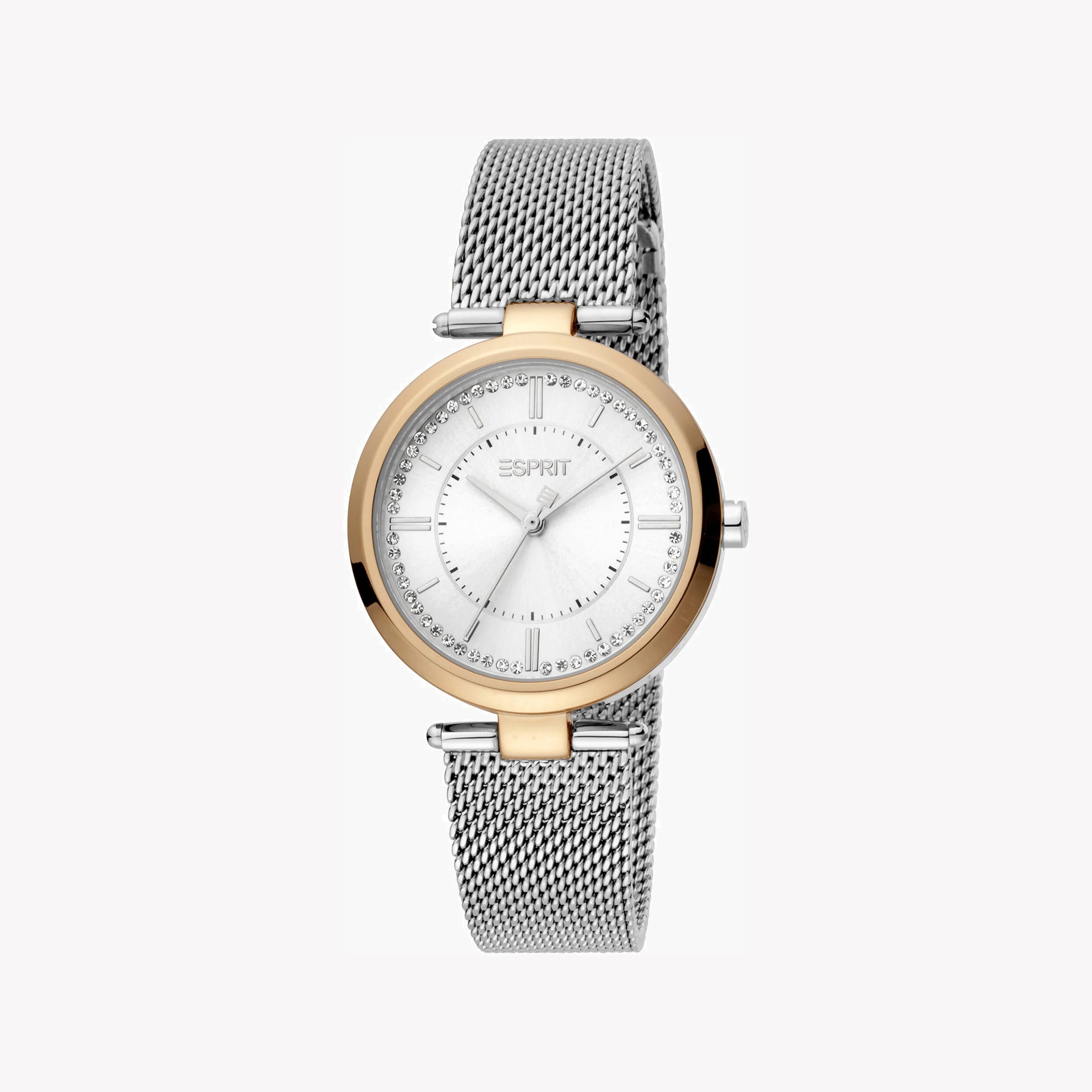 Esprit Women's Watch With Rose Gold Stainless Steel Case And Silver Stainless Steel Band