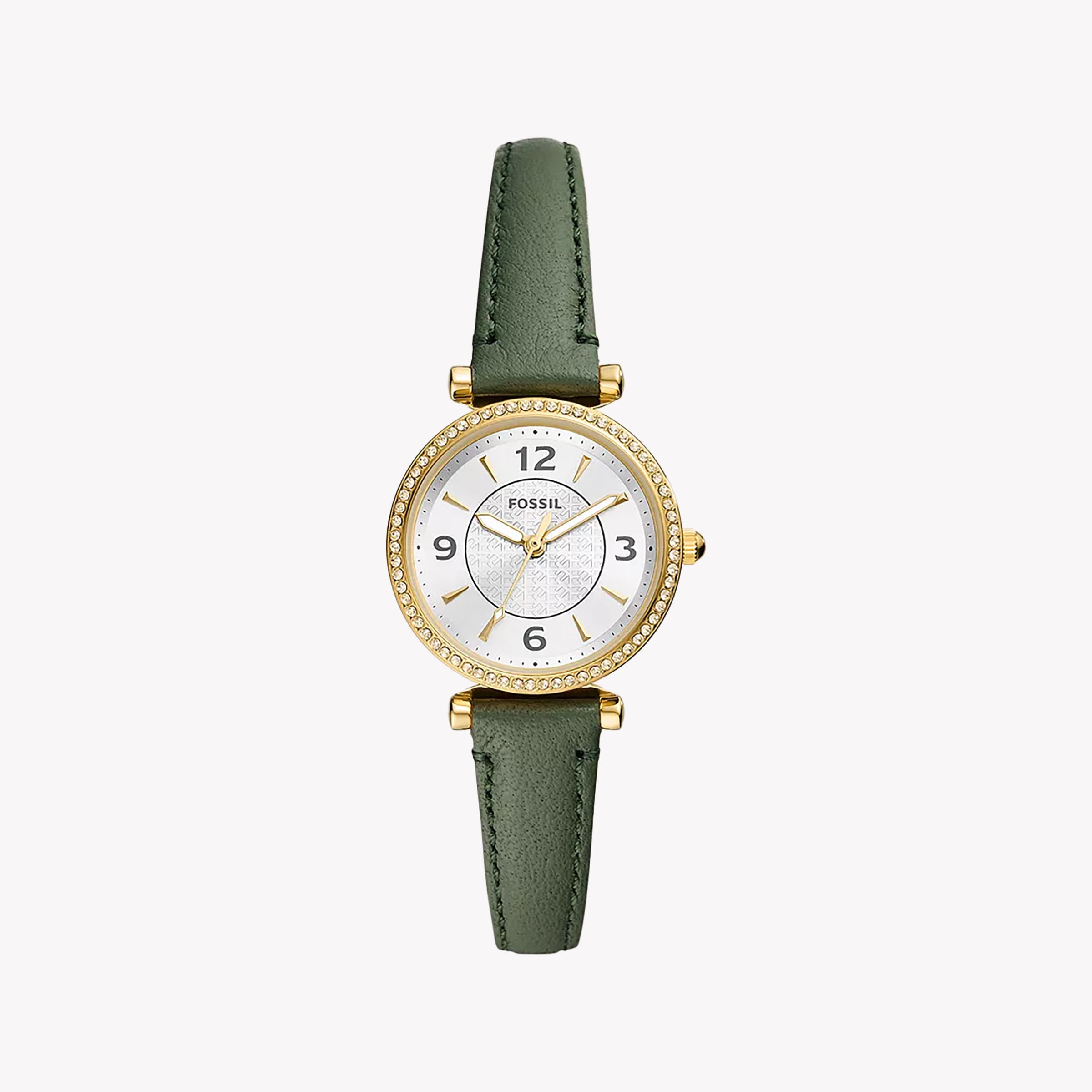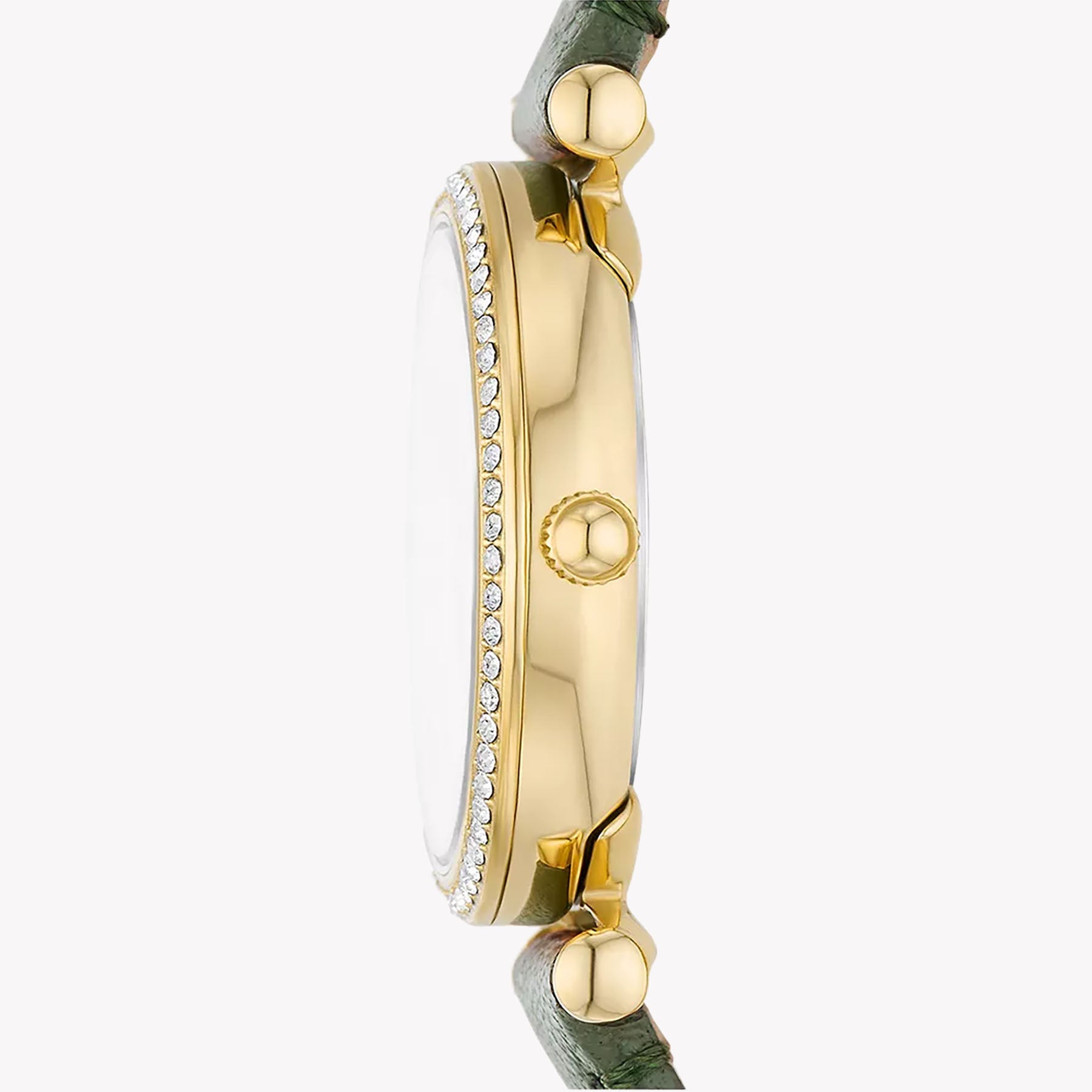 Fossil Women's Green Leather & Gold Stainless Steel Watch Es5298