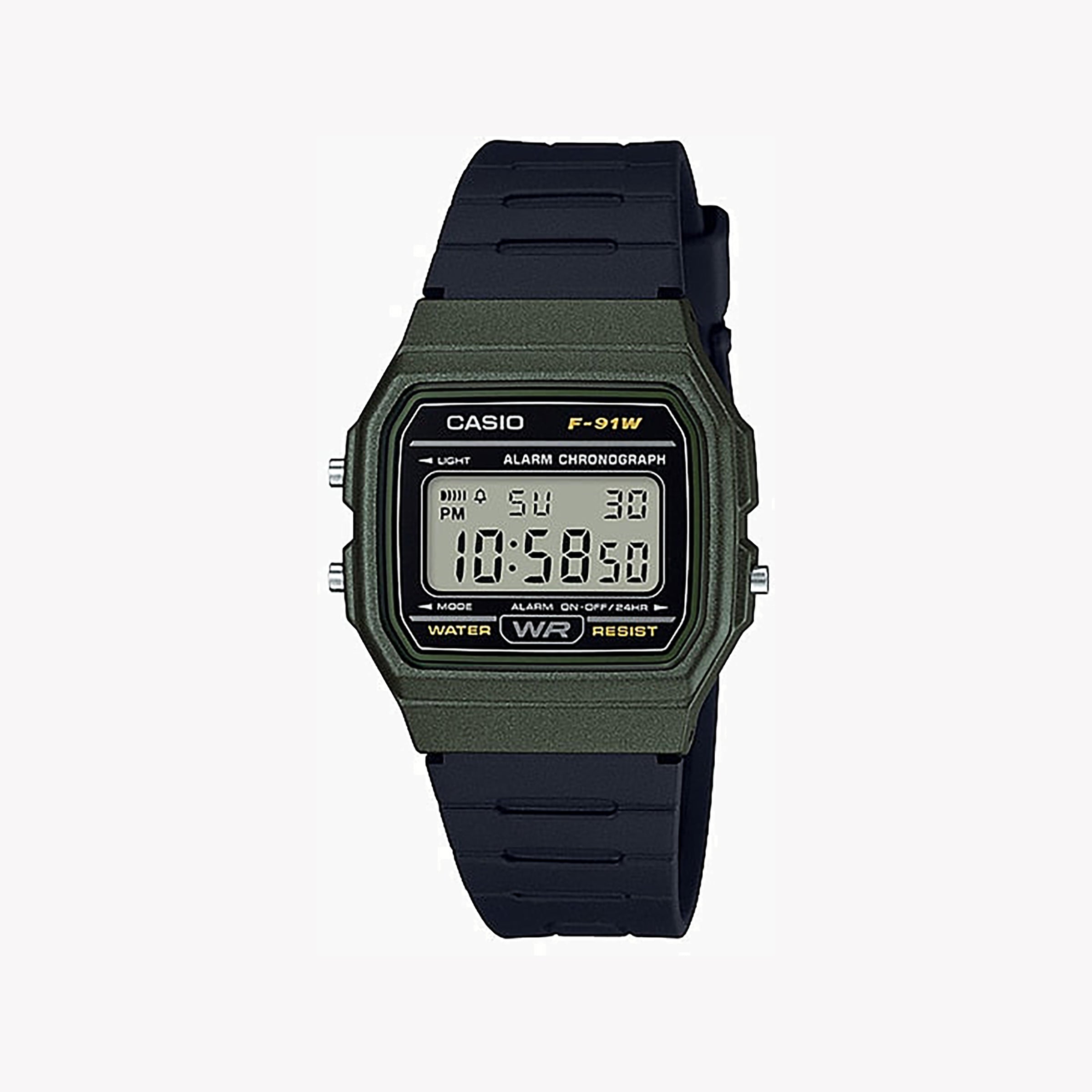Casio Unisex Green Resin Watch, Black Band | F-91wm-3a