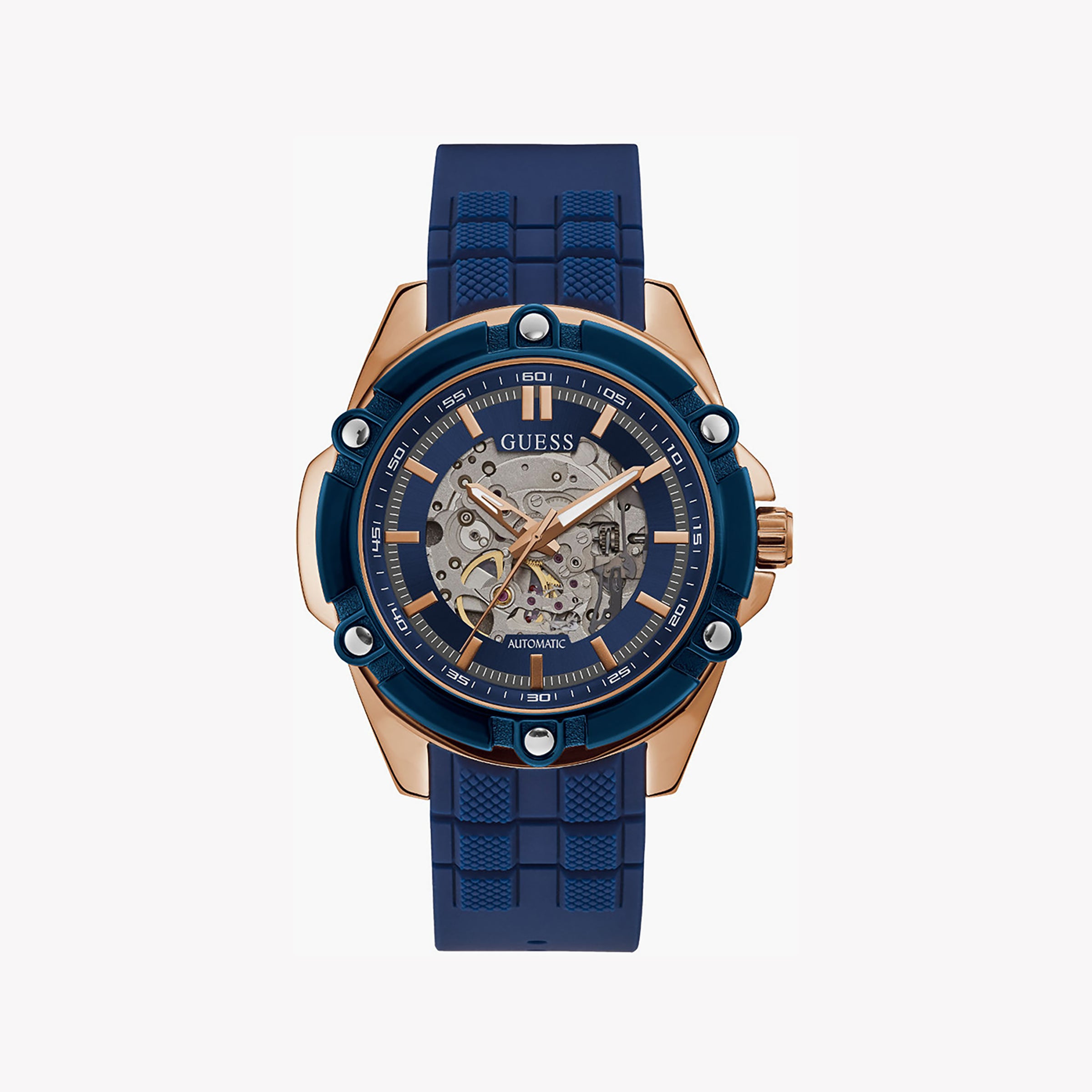 Guess Men's Rose Gold Watch, Blue Silicone Band | Gw0061g3