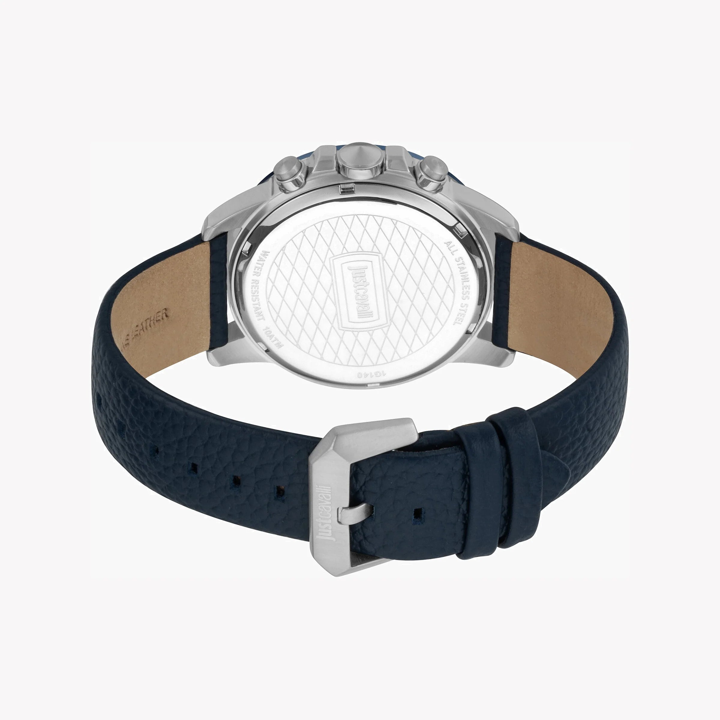 Just Cavalli Men's Blue Leather Watch, Silver Dial | Jc1g140l0045