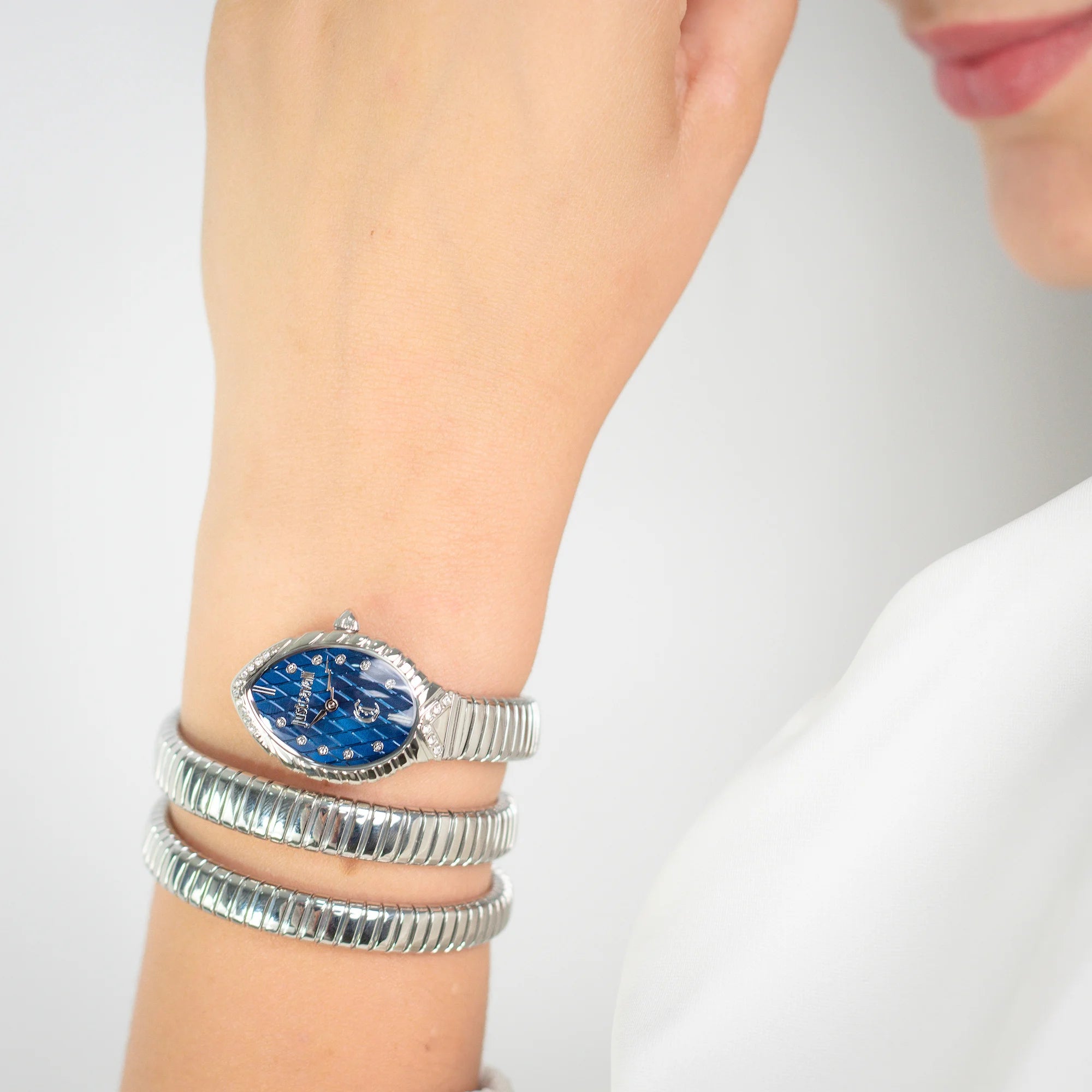 Just Cavalli Women's Silver Watch, Dark Blue Dial | Jc1l323m0015