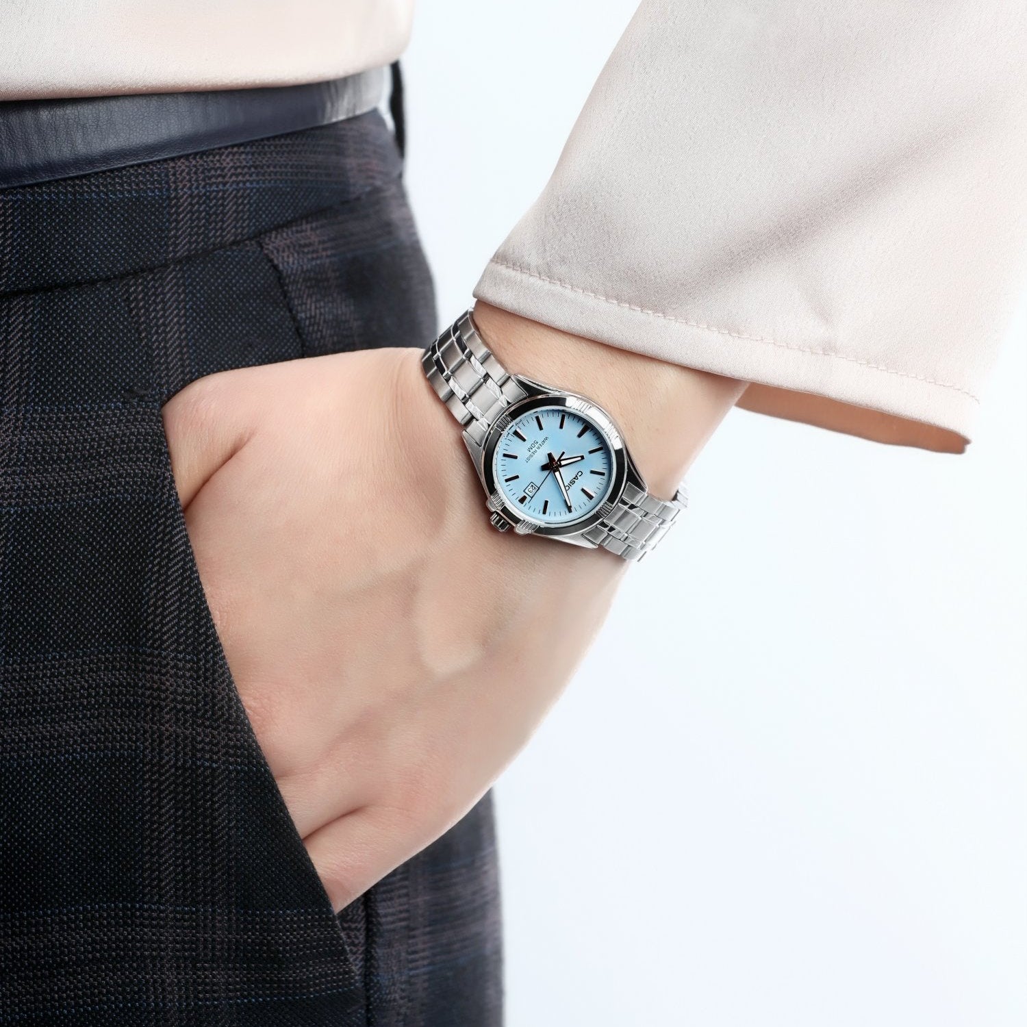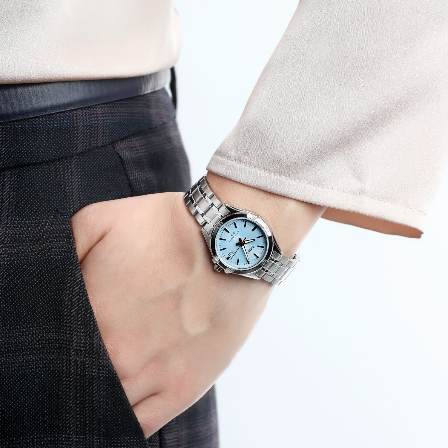 - Sporty Design: With a compact 36 mm x 31 mm stainless steel case and a striking blue dial, this watch effortlessly combines durability and flair.