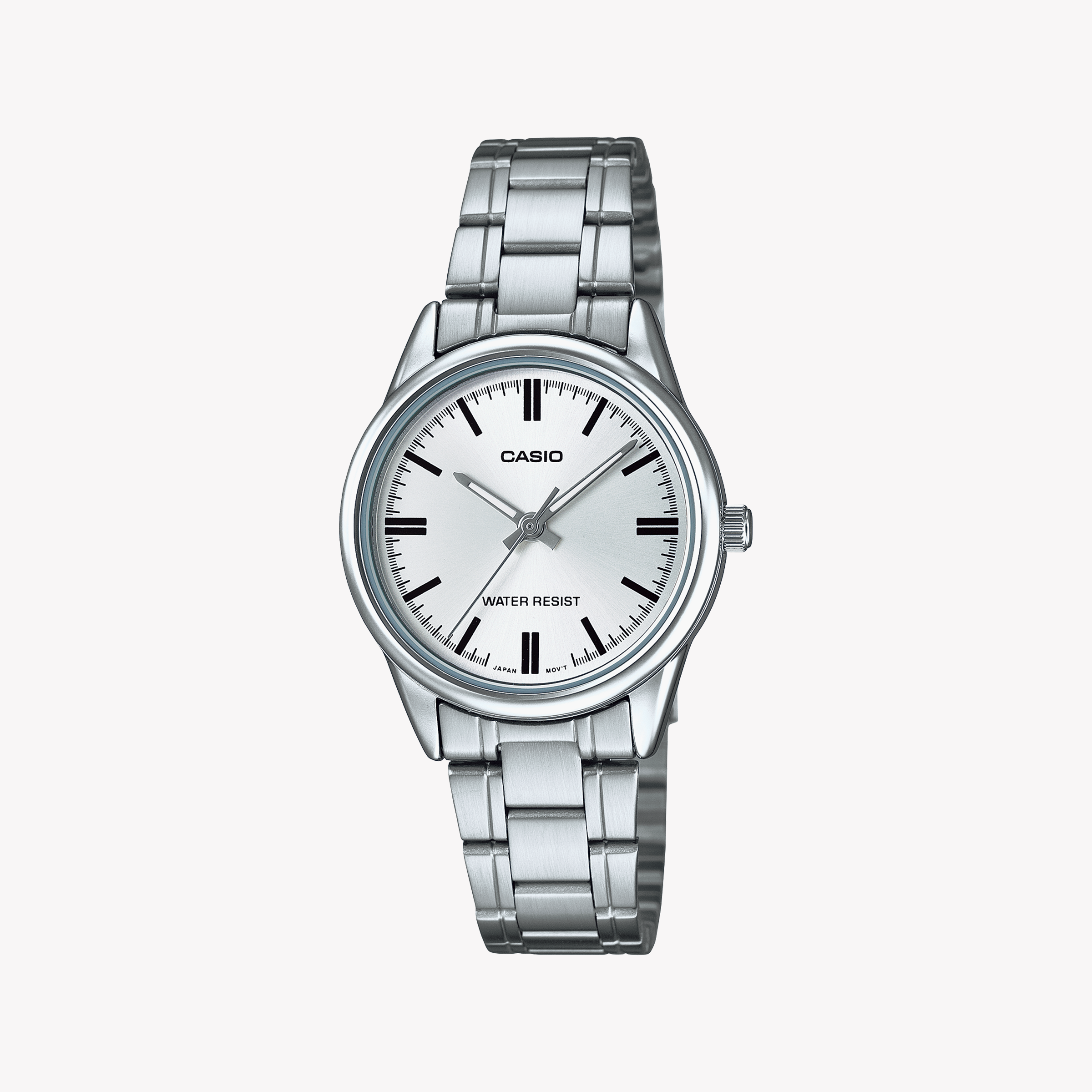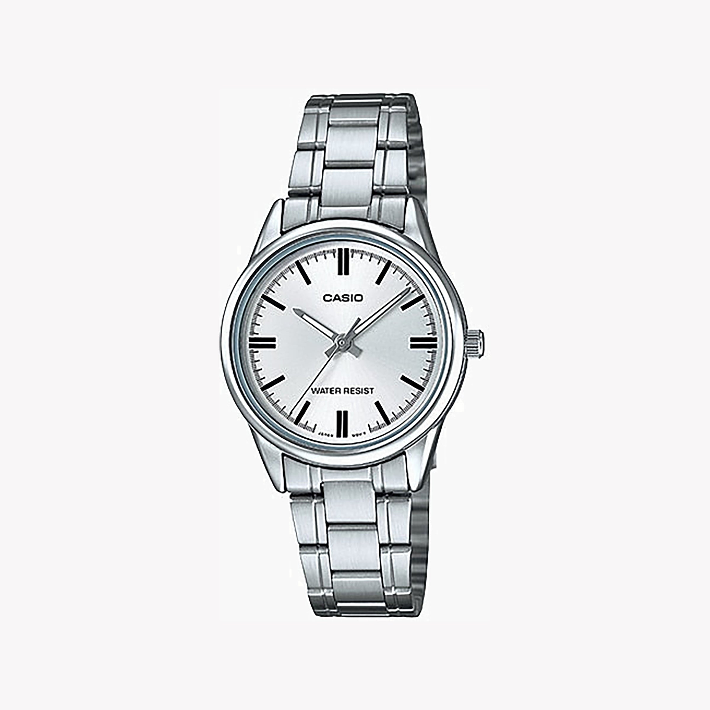 Casio Women's Silver Stainless Steel Watch, White Dial | Ltp-V005d-7audf