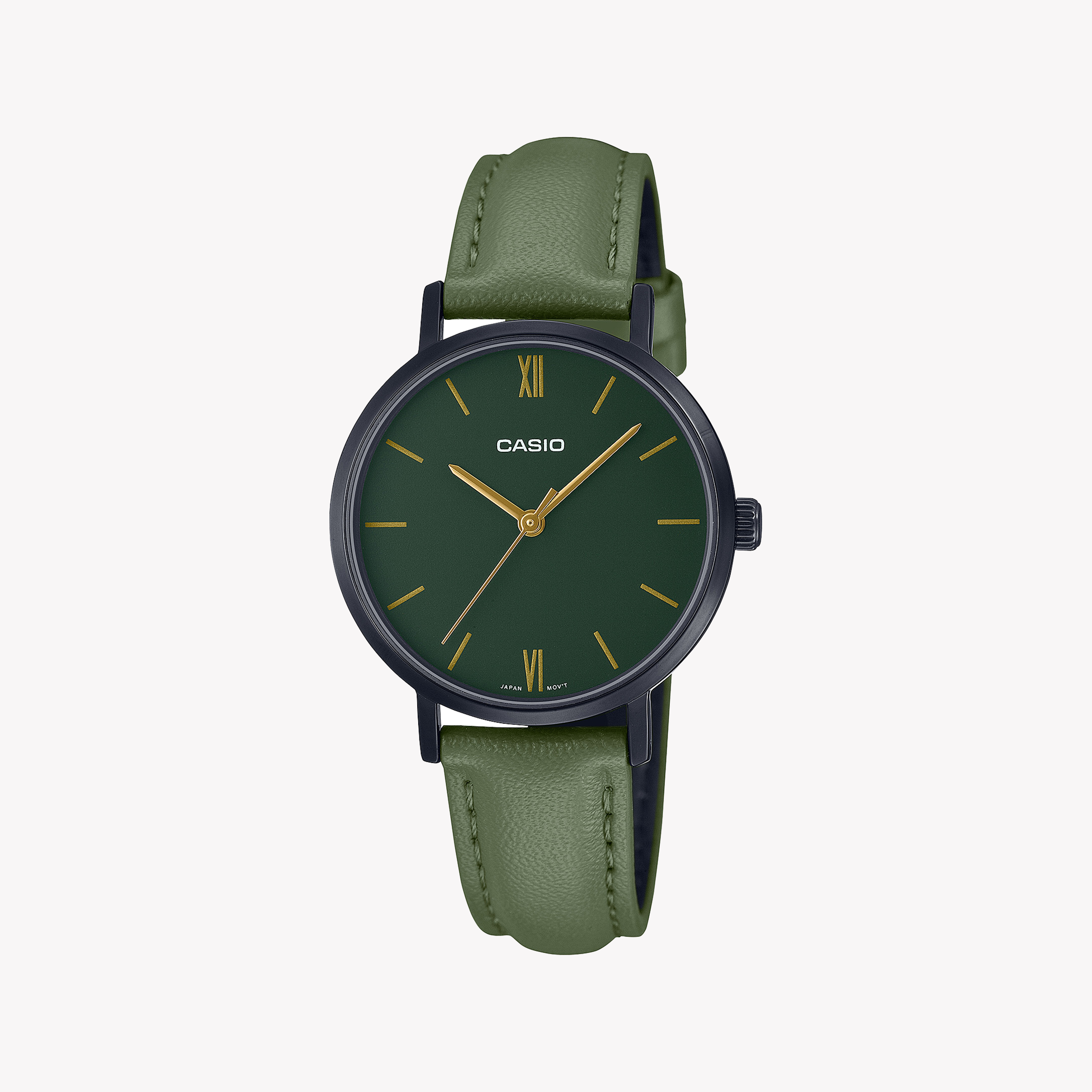 Casio Women's Black & Green Leather Watch, Stainless Steel | Ltp-Vt02bl-3audf