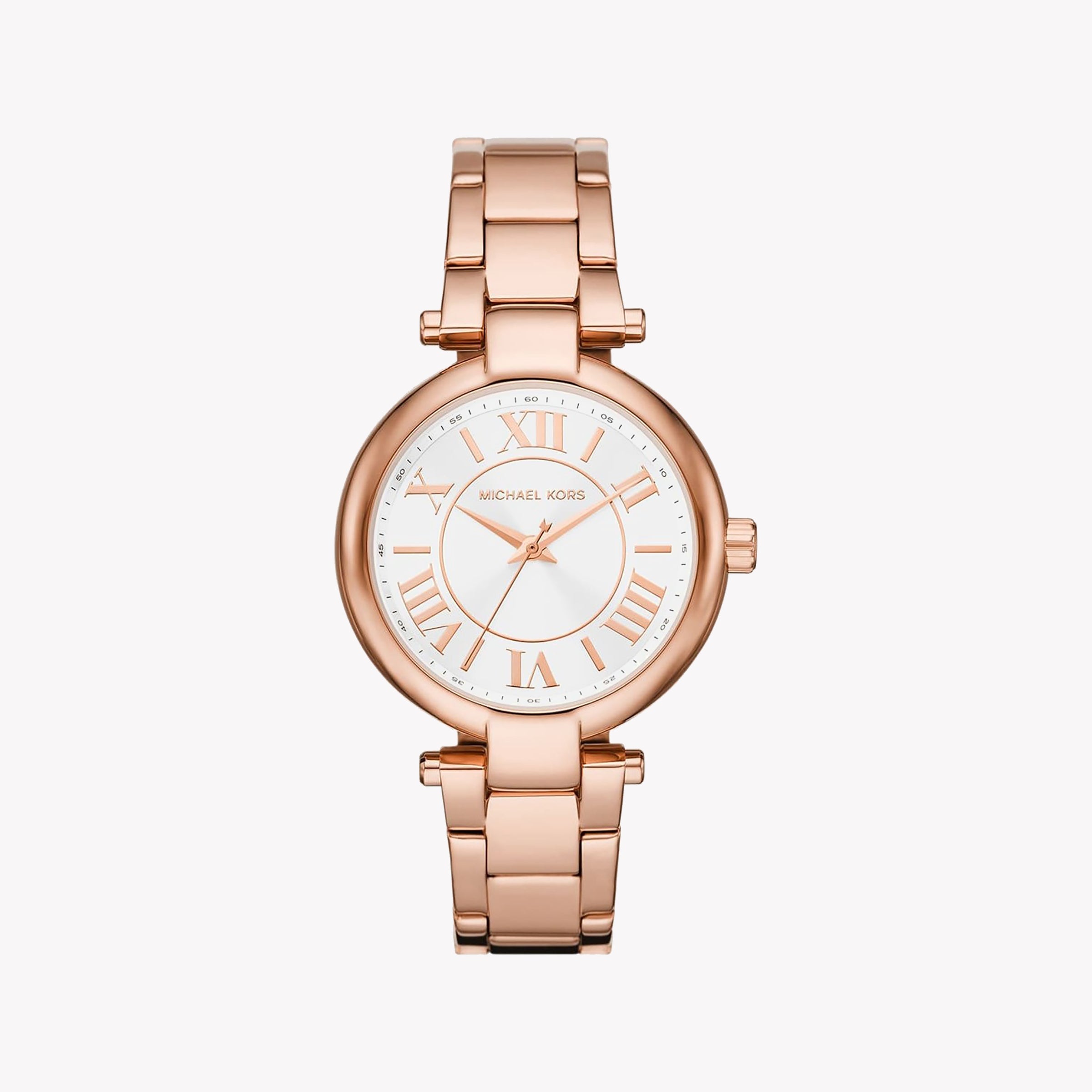 Experience timeless elegance with the Michael Kors Women's Rose Gold Quartz Watch - MK7419. Featuring a luxurious rose gold stainless steel band and case, a sophisticated white dial, and 5 ATM water resistance, this elegant timepiece is perfect for the modern woman seeking style and precision.