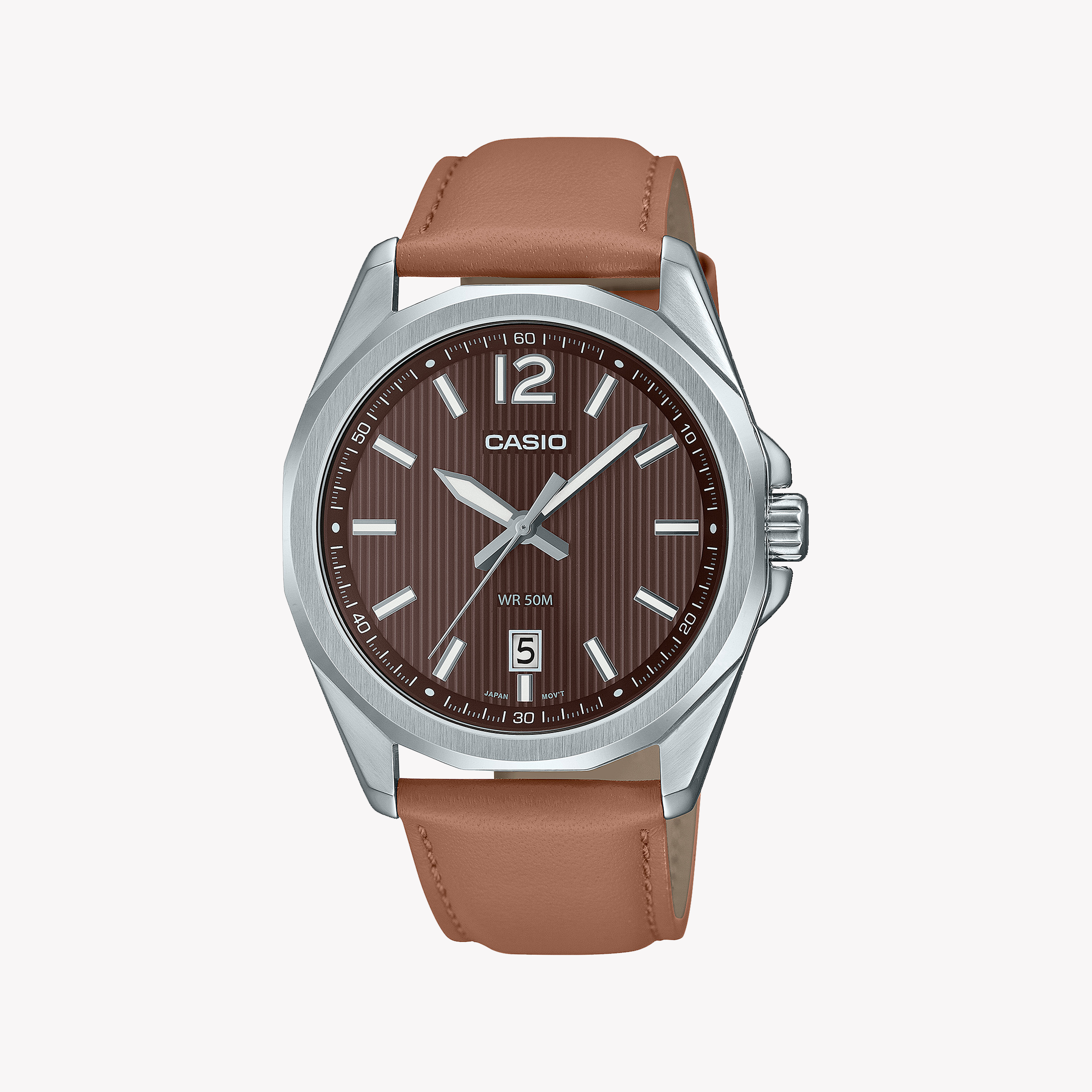 Casio Mtp-E725l-5avdf Sporty Timepiece - Brown Dial With Leather Band Men's Watch