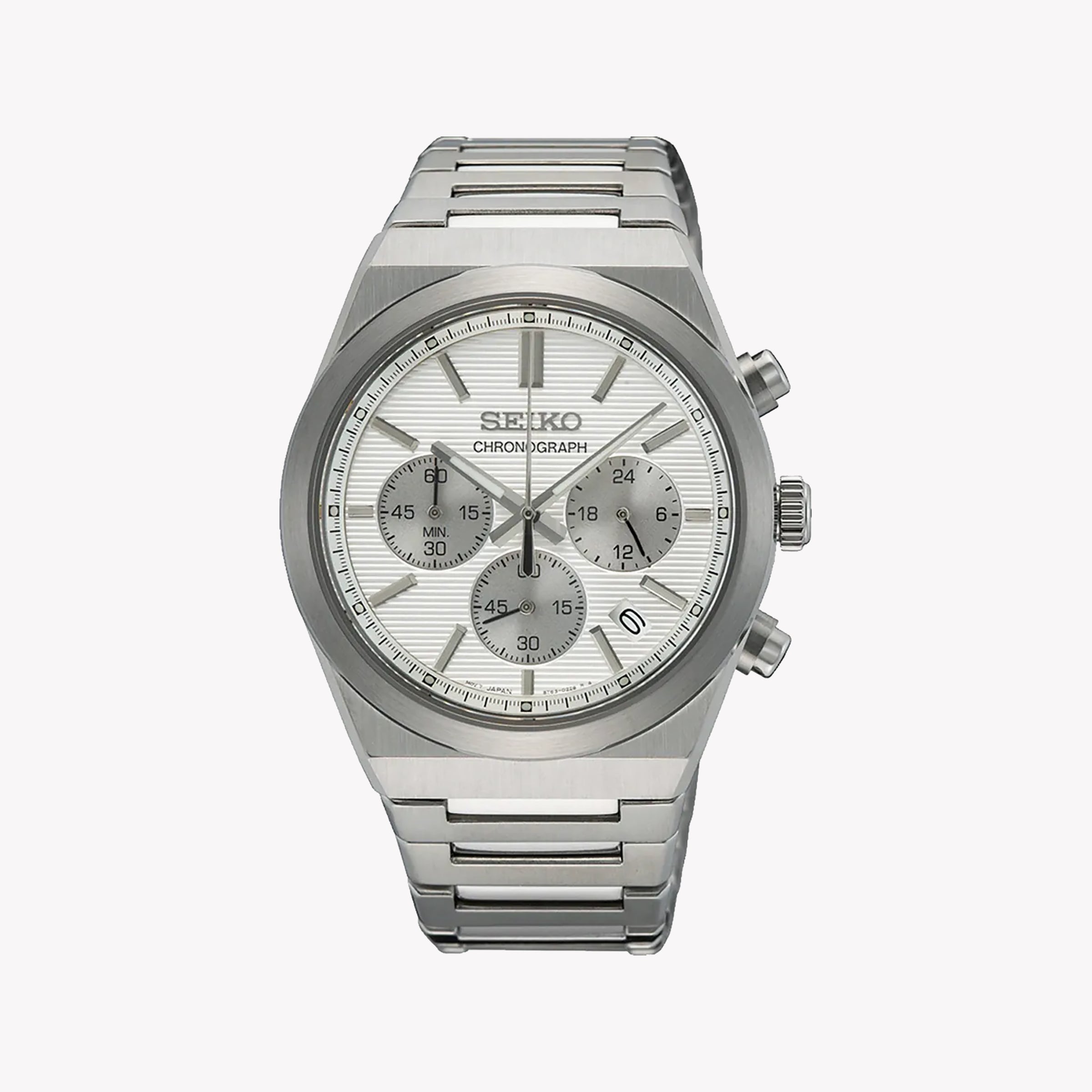 Seiko Men's Silver Stainless Steel Watch, White Dial | Ssb451p1