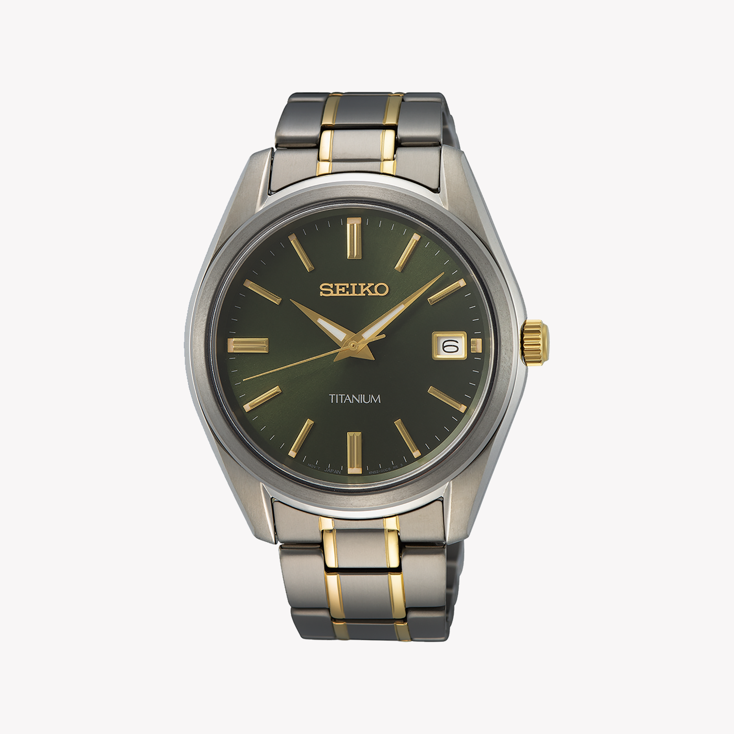 Stainless Steel Construction: The durable stainless steel case and band ensure that the SUR377P1 can endure the rigors of everyday wear. Its grey and gold band adds a sophisticated touch, complementing the striking dark green dial.