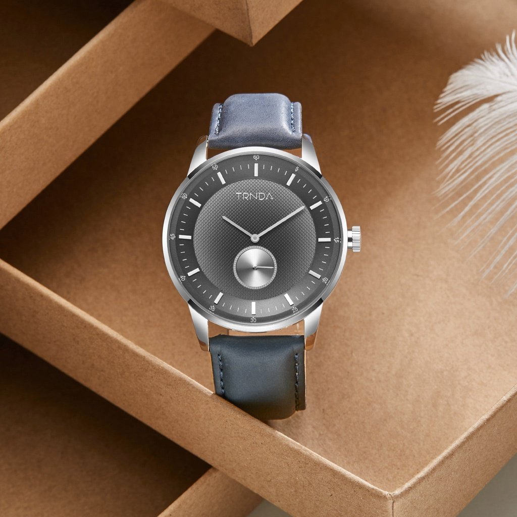 Trnda Men's Stainless Steel Watch, Blue Leather Band | Trn-Ss43