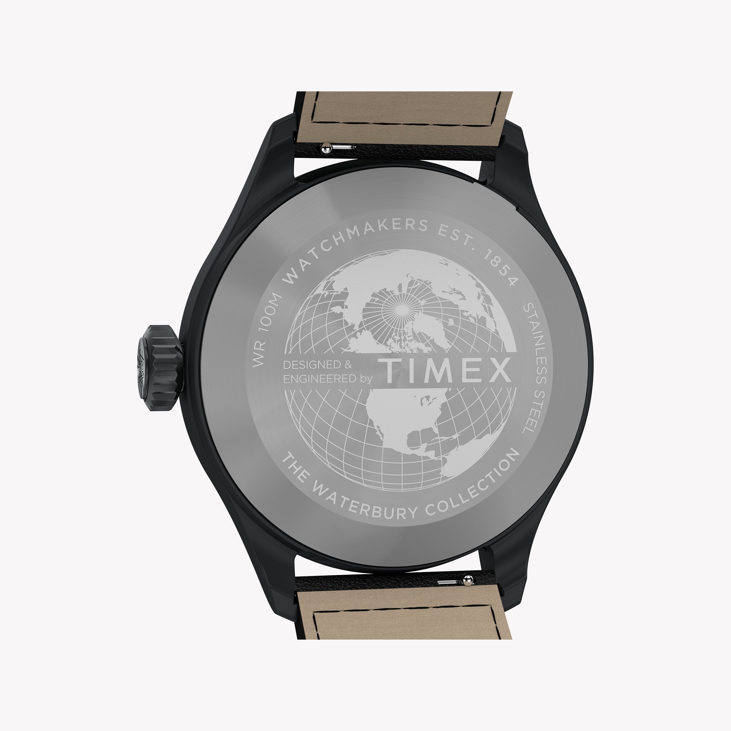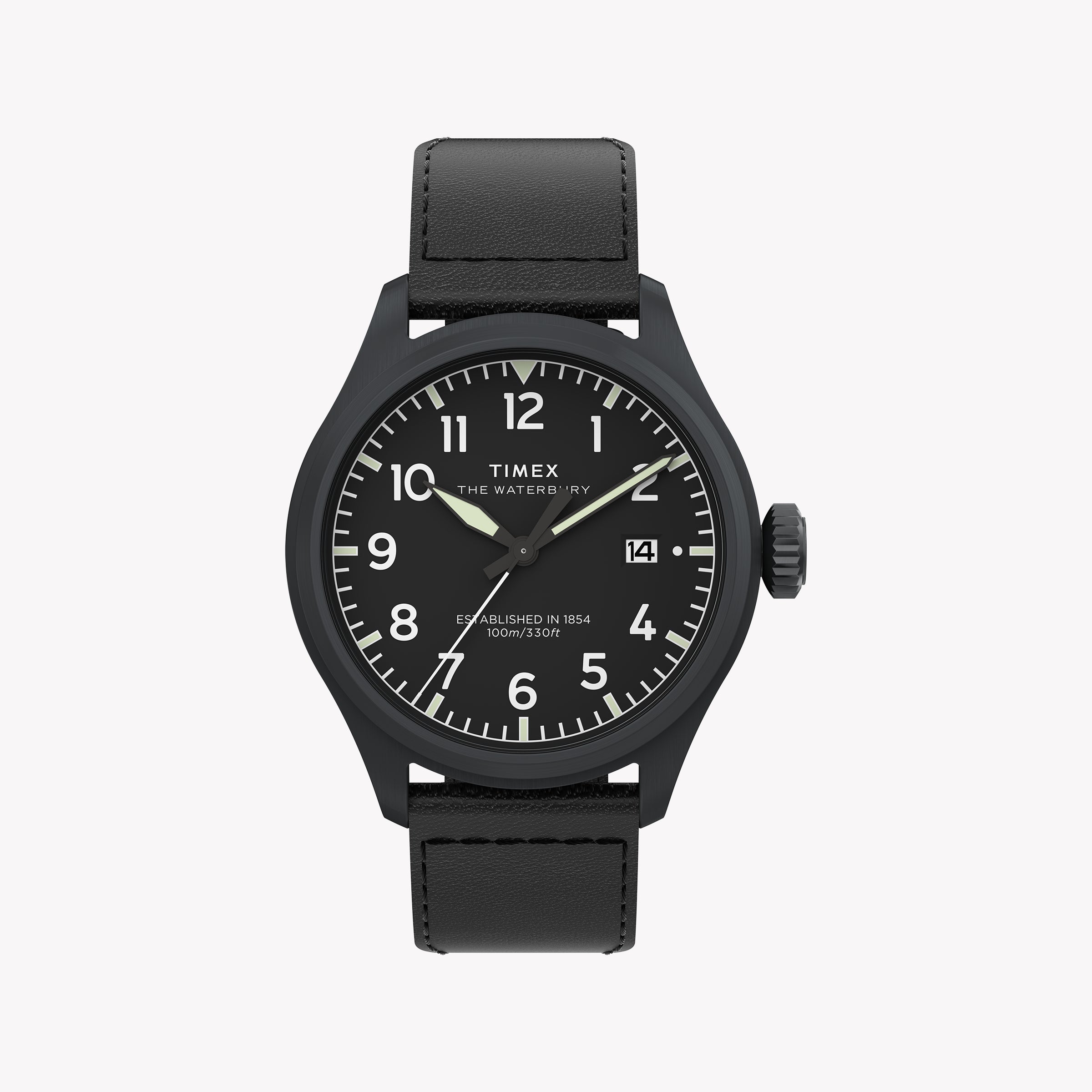 Waterbury ACE SST Black Dial Black Leather Strap Watch TW2Y18900