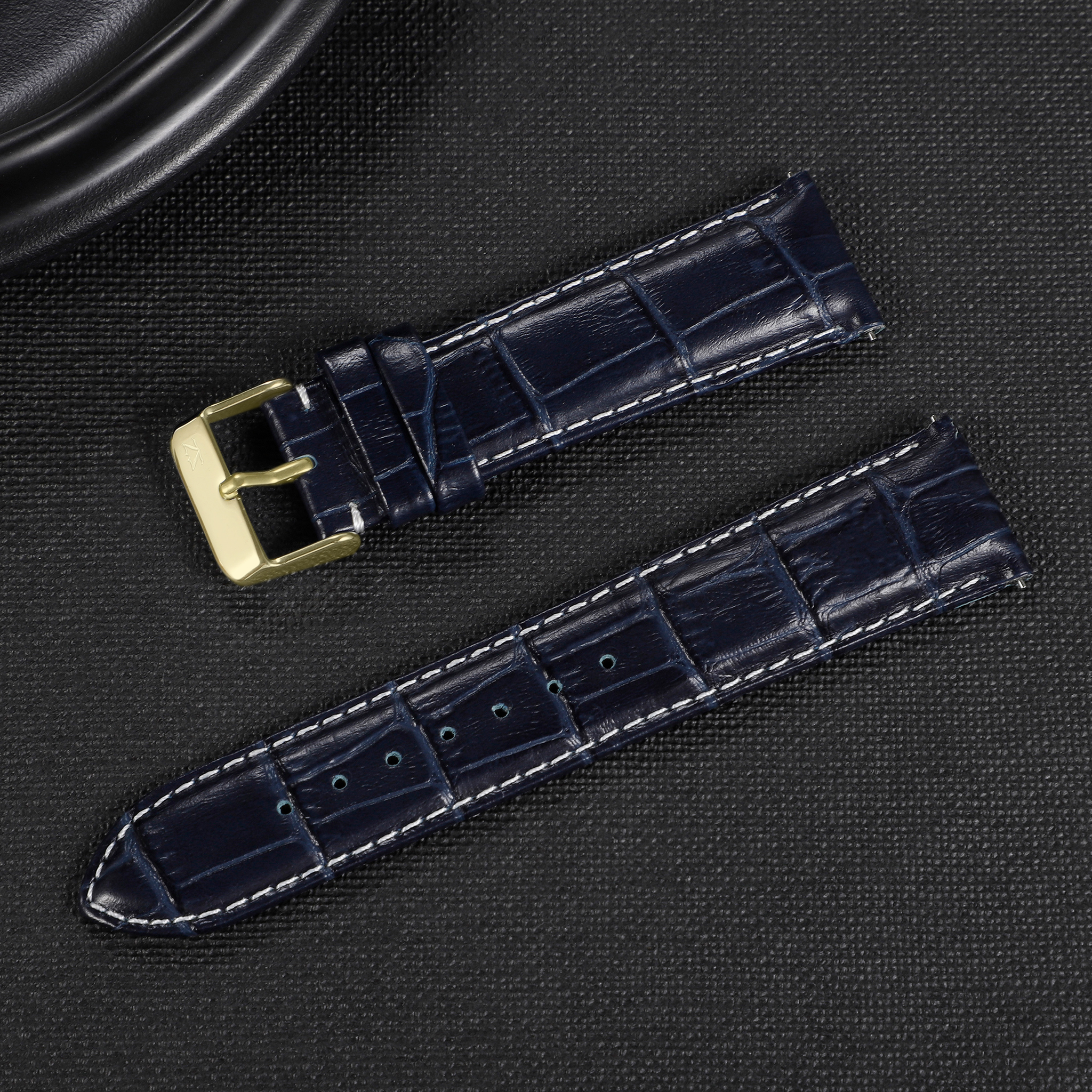 Zink Men's Leather Watch Band - Dark Blue | Zlb006dbg