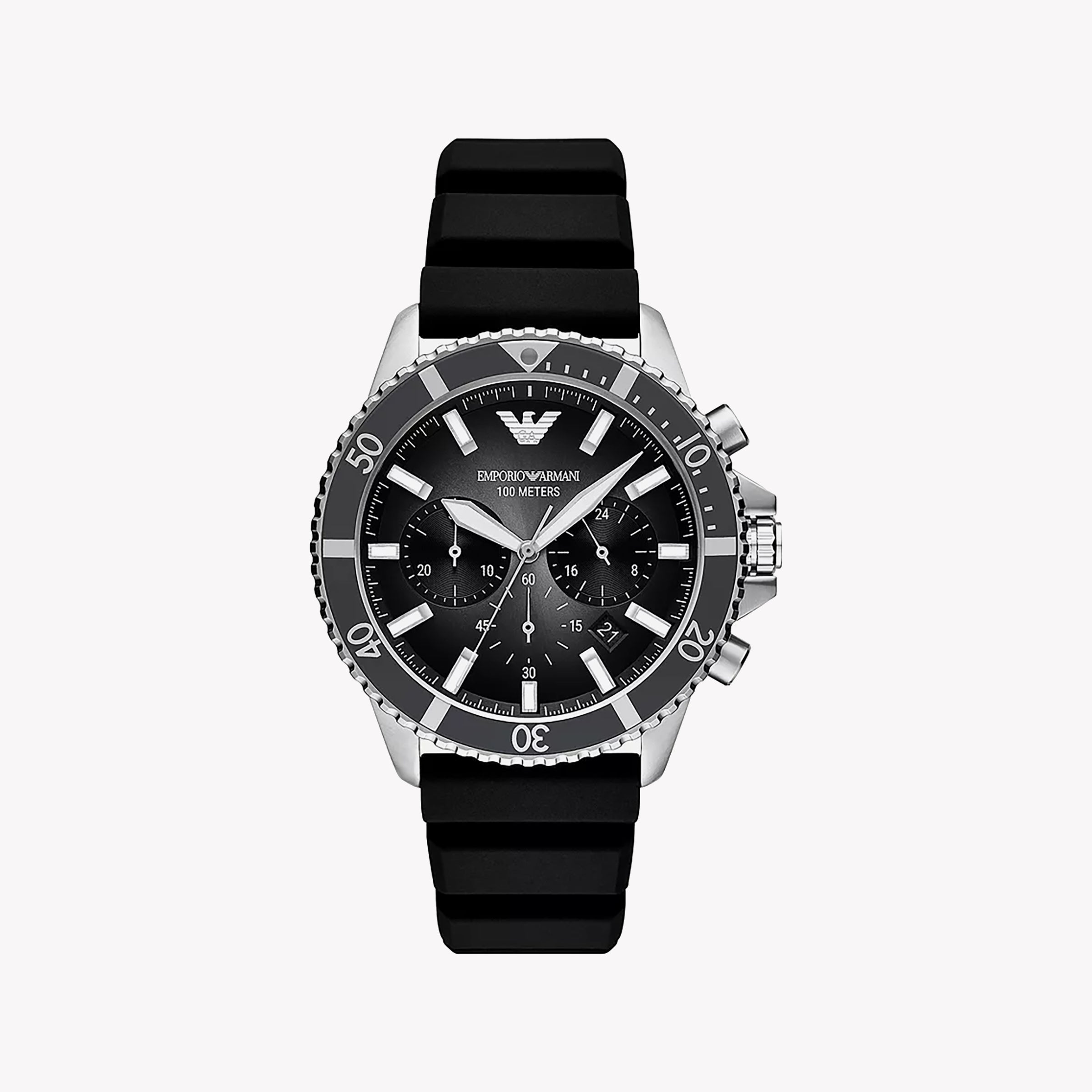 Emporio Armani Men's Silver Watch, Black Silicone Band | Ar11619