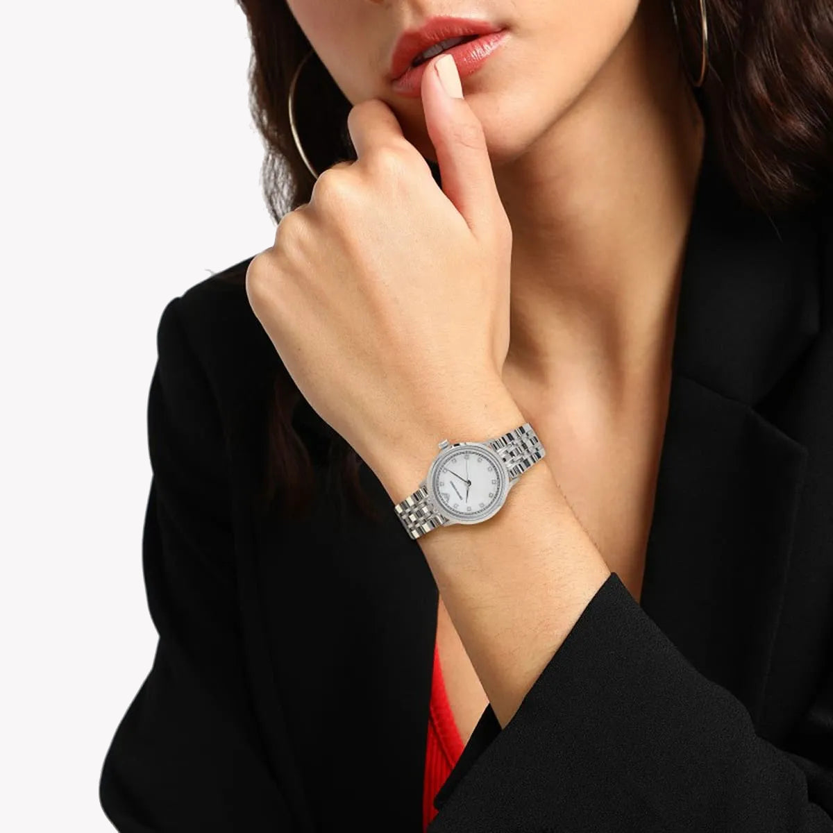 - Chic Aesthetic: The watch features a sleek 26 mm stainless steel case in a radiant silver finish, ensuring it complements any attire, from casual to formal.