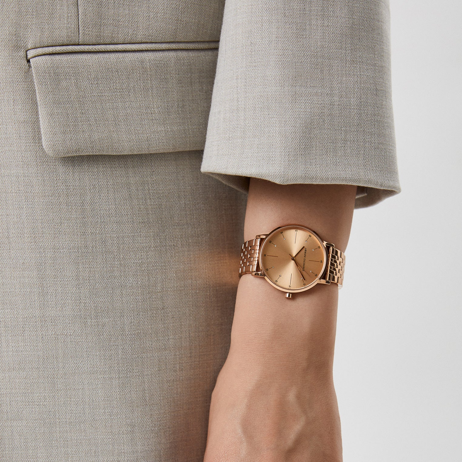 - Bold Dial: The matching rose gold dial enhances the watch's overall appeal, featuring clean lines and minimalist markers that complement its luxurious vibe.