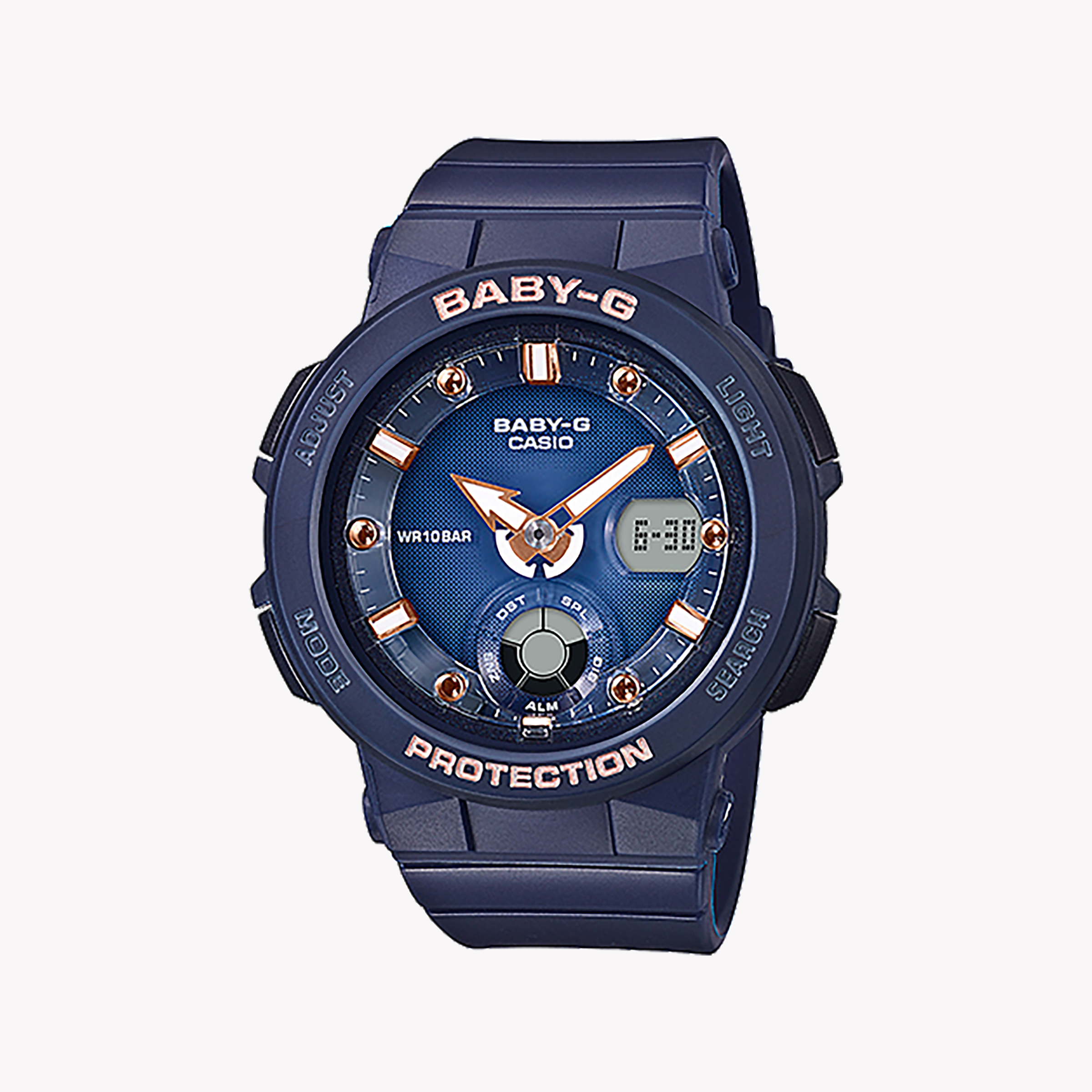 Style yourself for work or play with the BGA-250-2A2DR BABY-G, a watch that combines fun aesthetics with practical functionality. Let your personality shine through with this sporty timepiece.