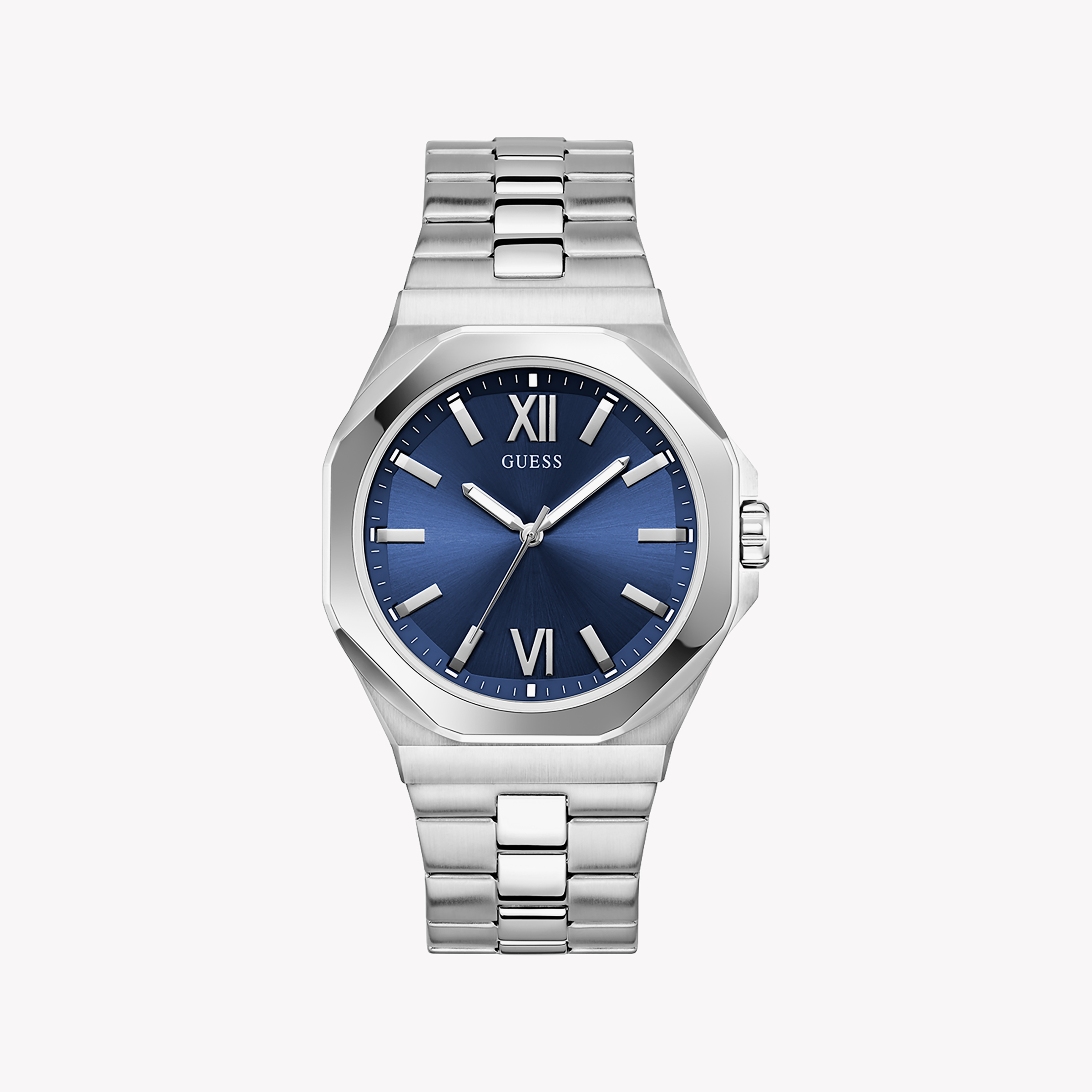 Guess Men's Silver Watch, Blue Dial | Gw0849g1