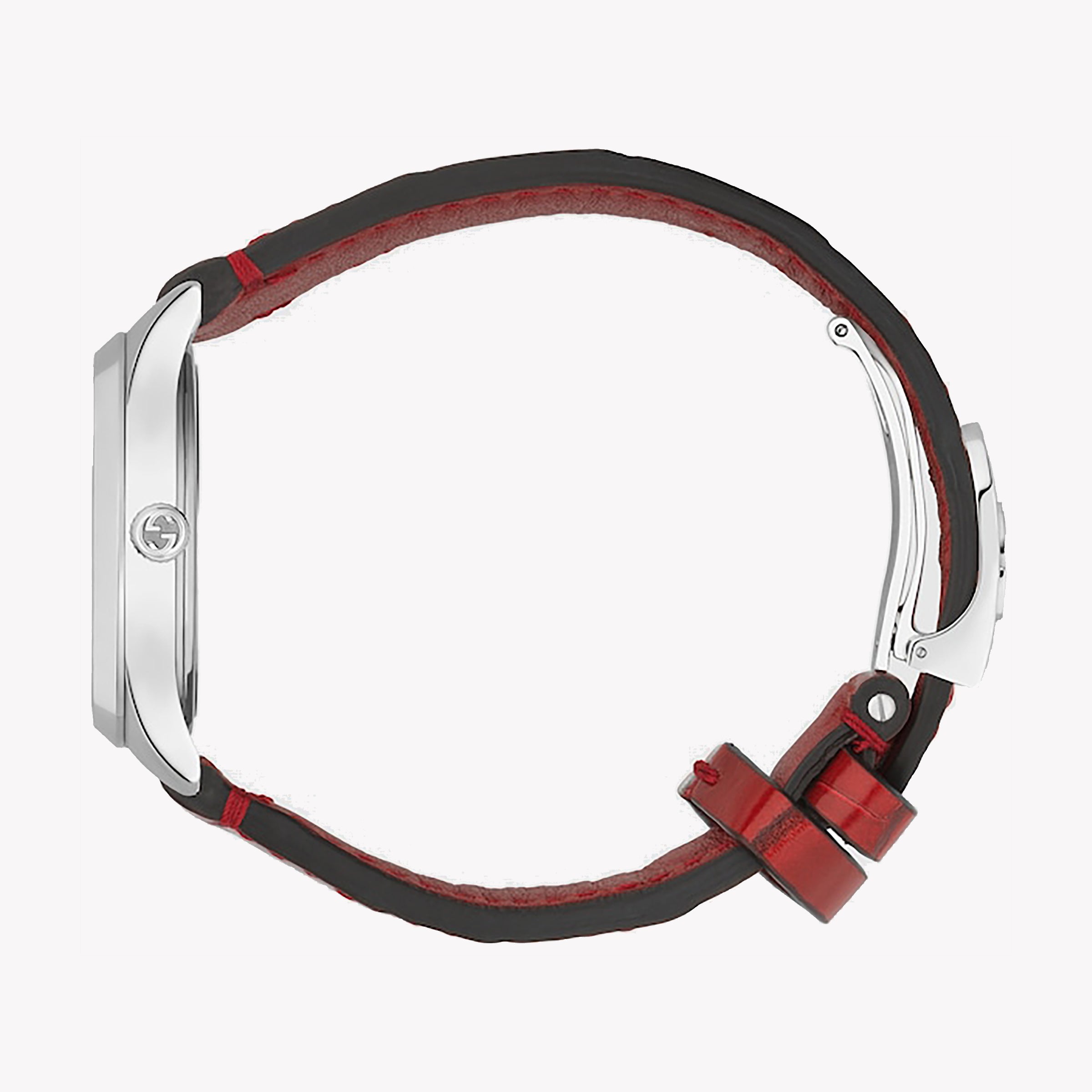 Gucci Women's Silver & Red Leather Watch, Silver Dial | Ya1265057