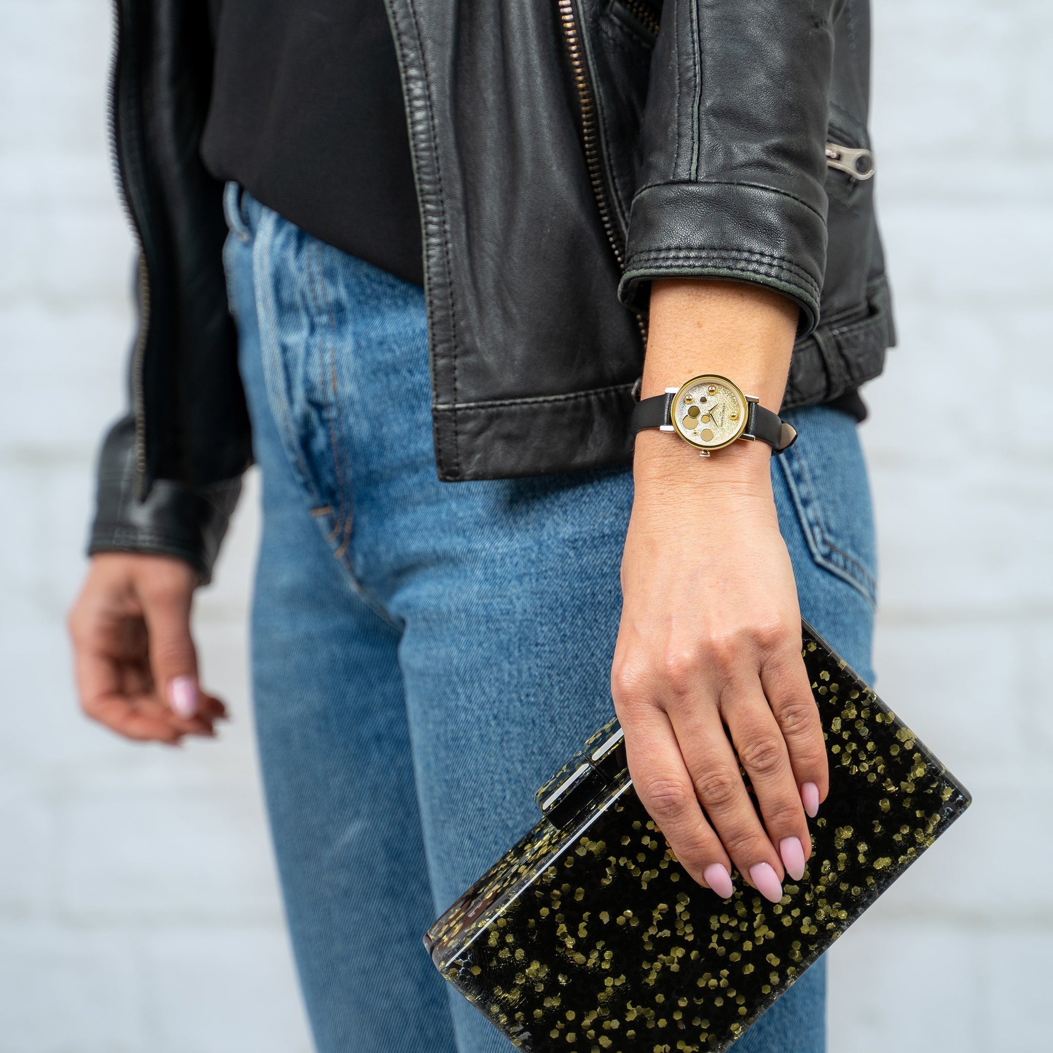 Pierre Cardin Women's Black Leather Watch, Silver & Gold | Ccm.0514