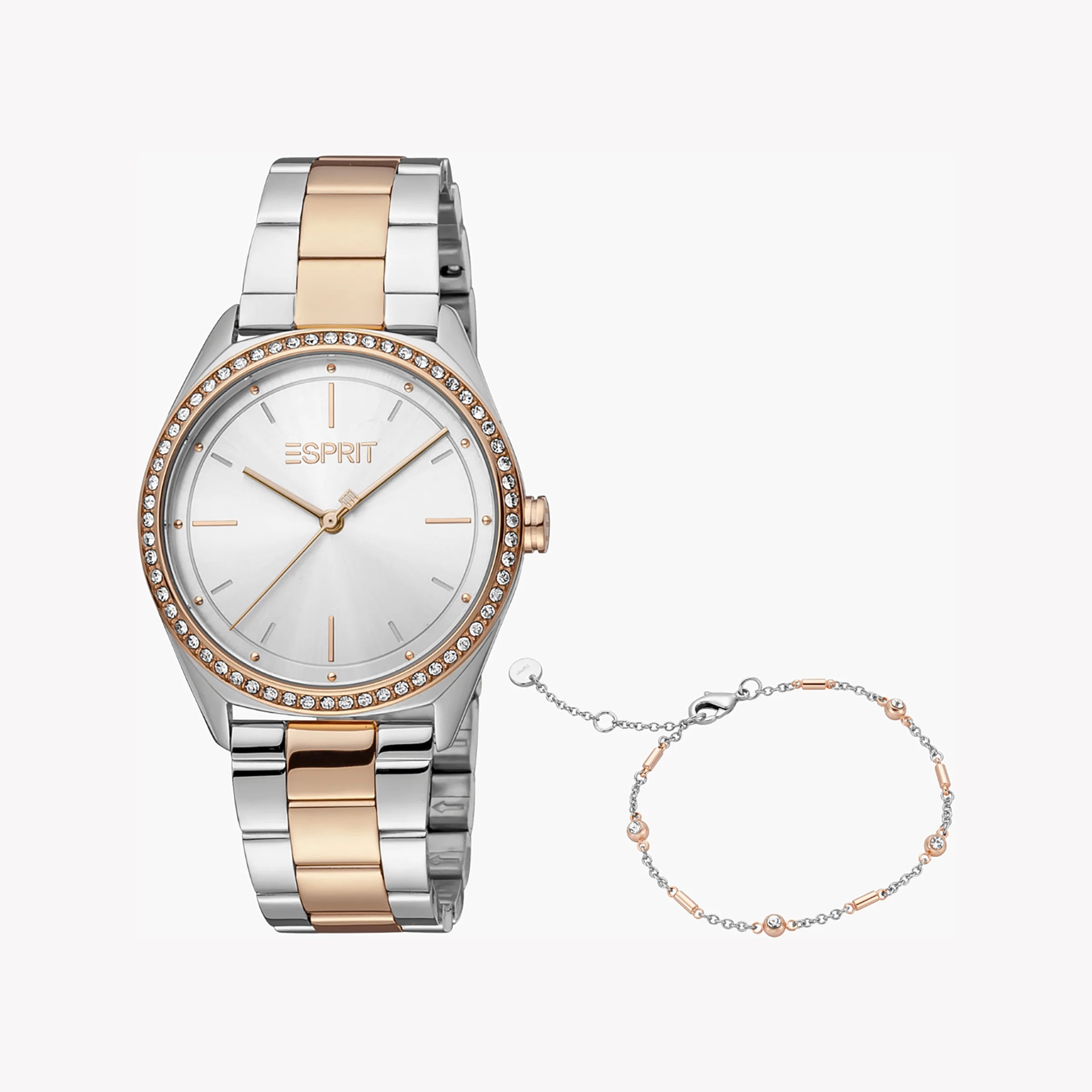 Esprit Women's Silver & Rose Gold Watch, Silver Dial | Es1l140m0075
